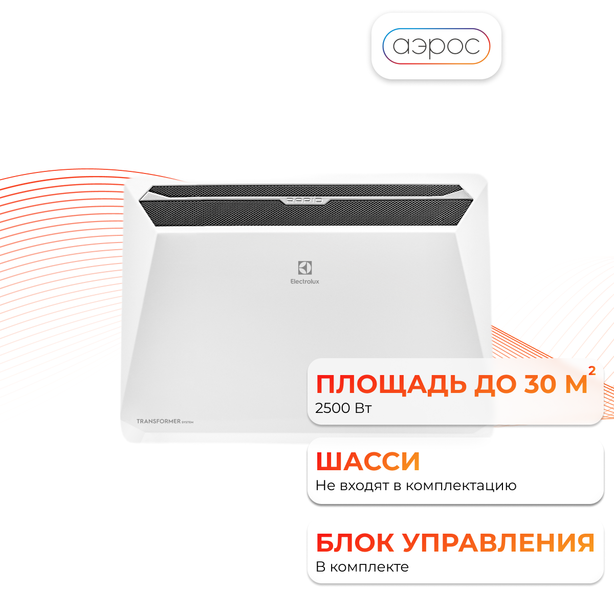 Конвектор Electrolux Rapid Transformer с блоком управления и шасси ECH/R-2500 T-TUI4 (инверторный)