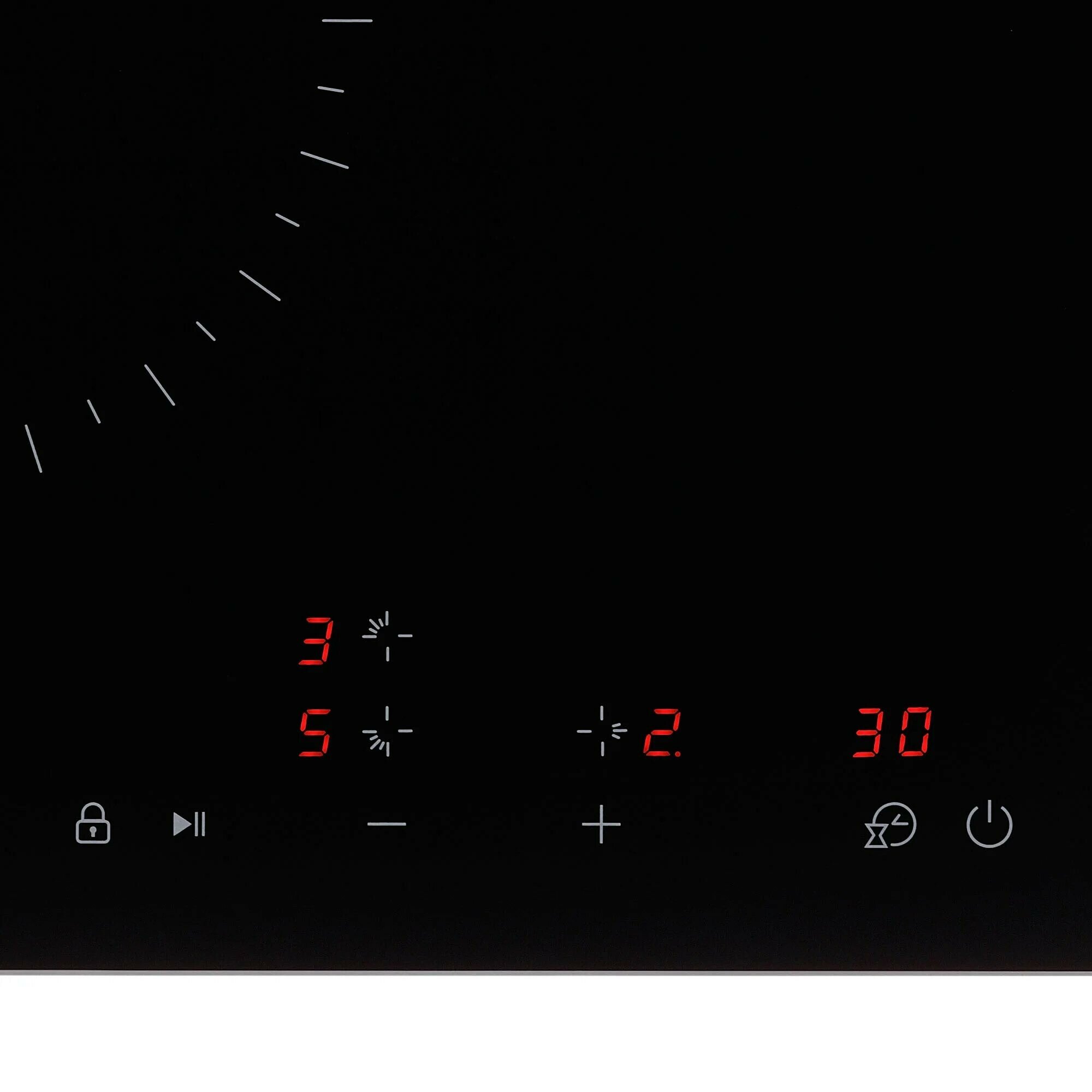 | Размеры конфорок | Диаметр и мощность конфорок, мм/кВт: Дальняя левая: 165 мм * 1,2 кВт; Ближняя левая: 200 мм * 1,8 кВт; Центральная правая: 200 мм * 1,8 кВт |