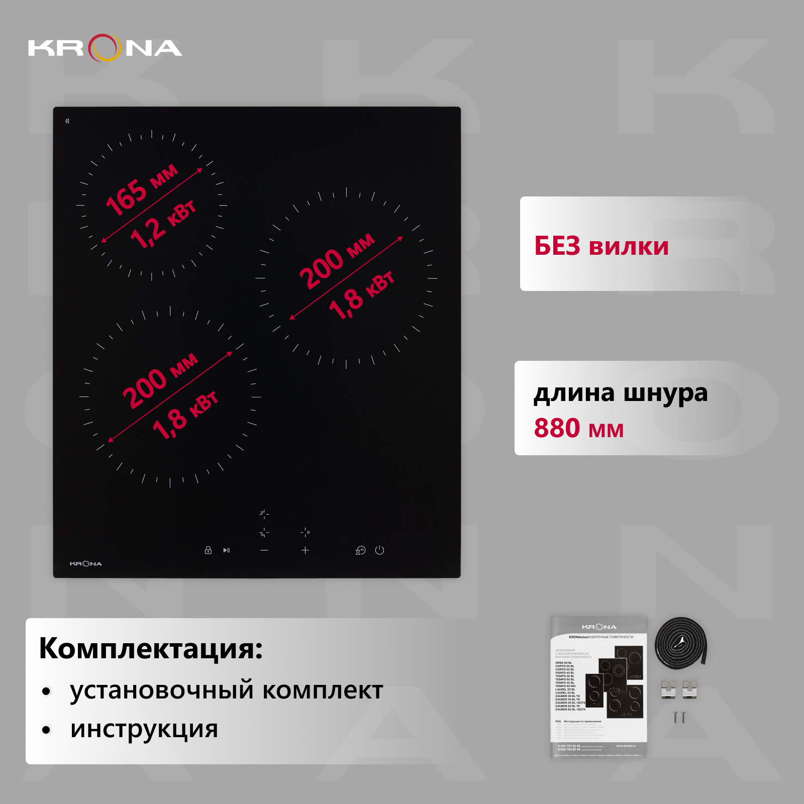 Электрическая варочная панель 45 см KRONA ZAUBER 45 BL TK интересное: