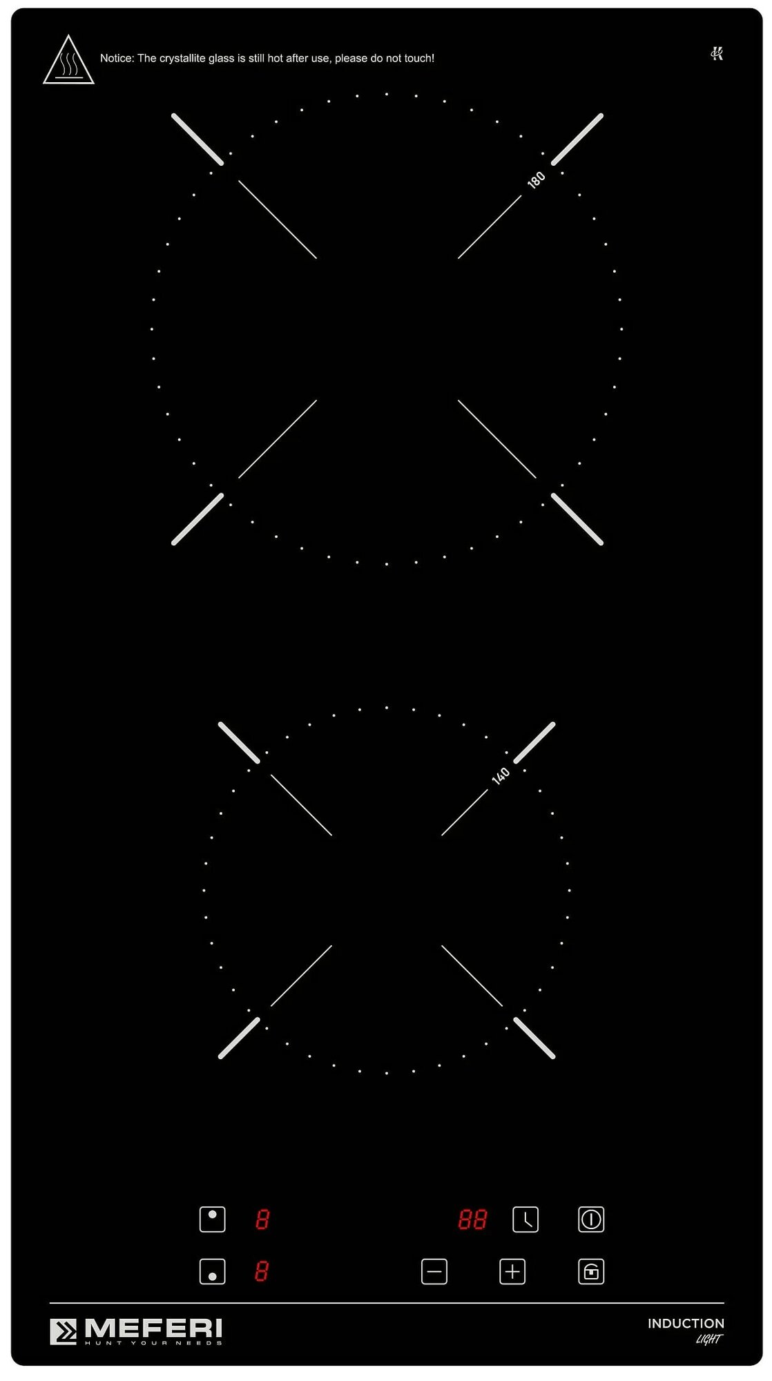 Индукционная варочная панель MEFERI MIH302BK LIGHT, 30 см, 2 конфорки, черная