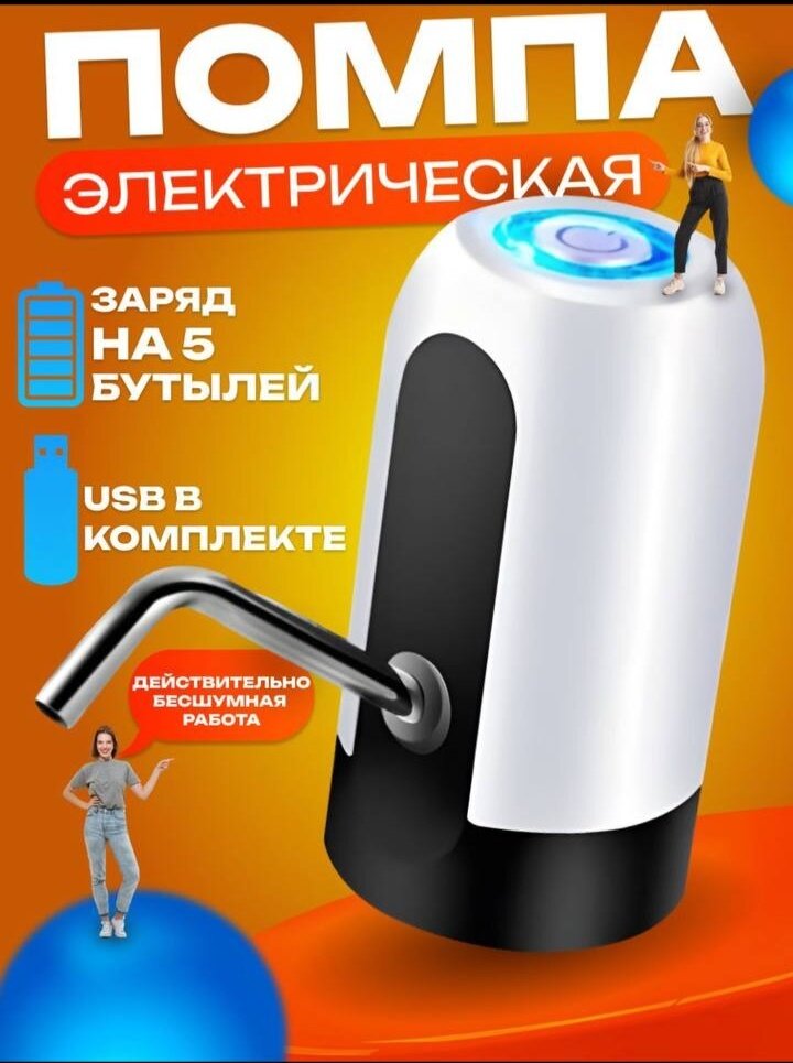помпа для воды на бутыль 19 литров, с зарядкой USB электрическая; диспенсер для воды; помпа для воды 5 литров