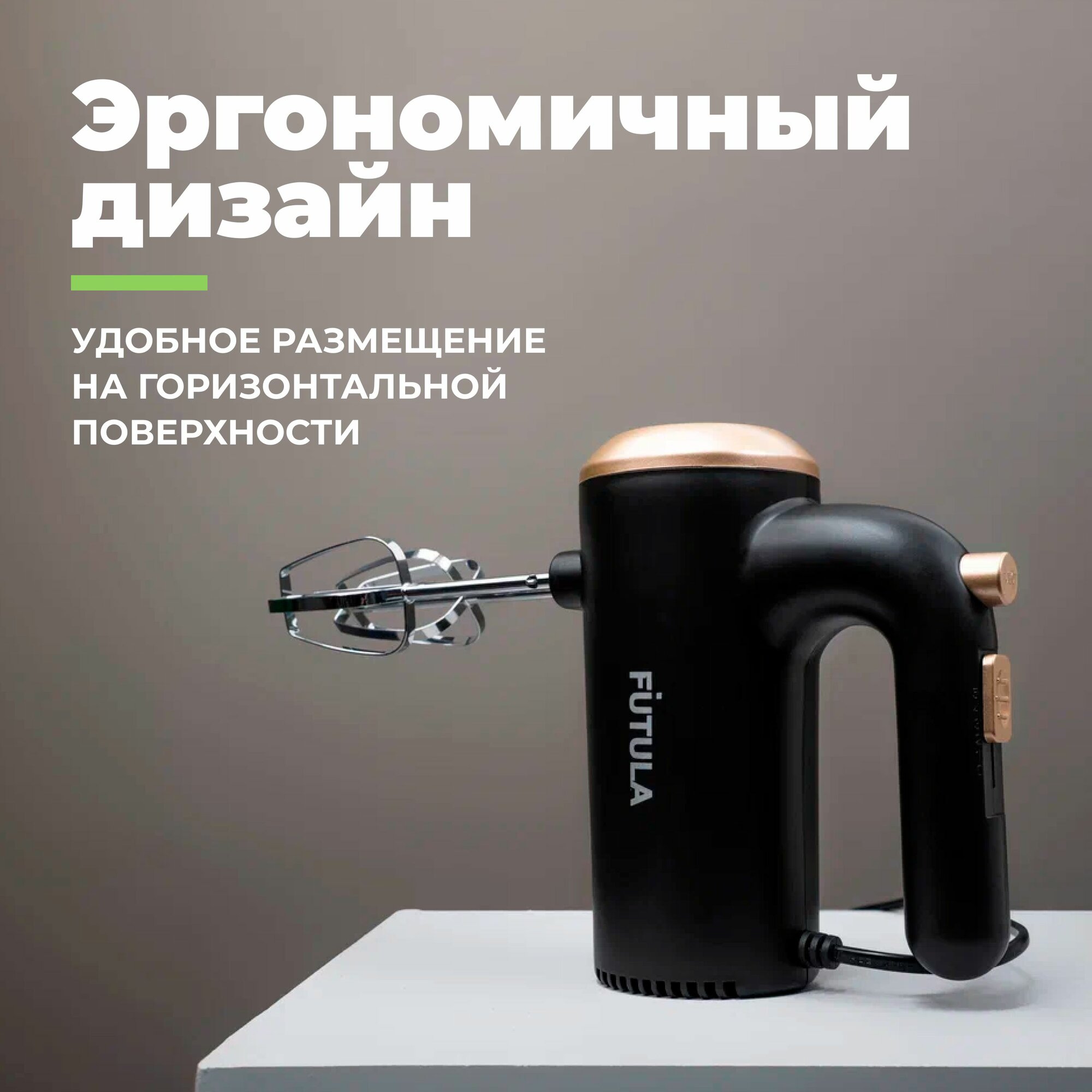 Миксер Futula HM8 ручной кухонный, 1000 Вт, 10 скоростей, турбо режим, черный металлик