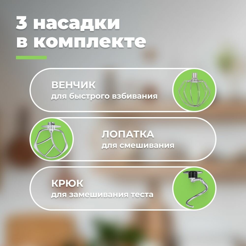 | Насадки | венчик для взбивания / крючки для замешивания теста |