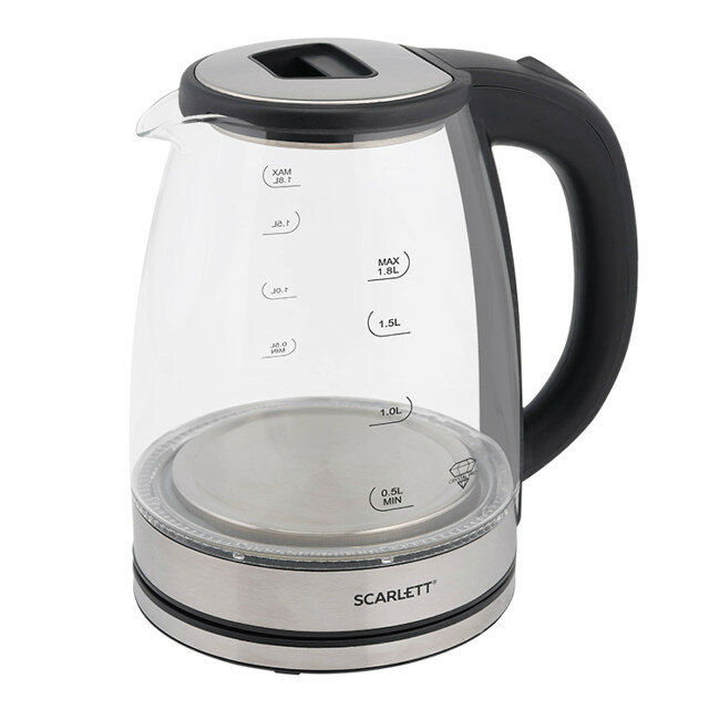 Электрический чайник SCARLETT SC-EK27G30, объем 1.8 л , прозрачный/сталь/черный