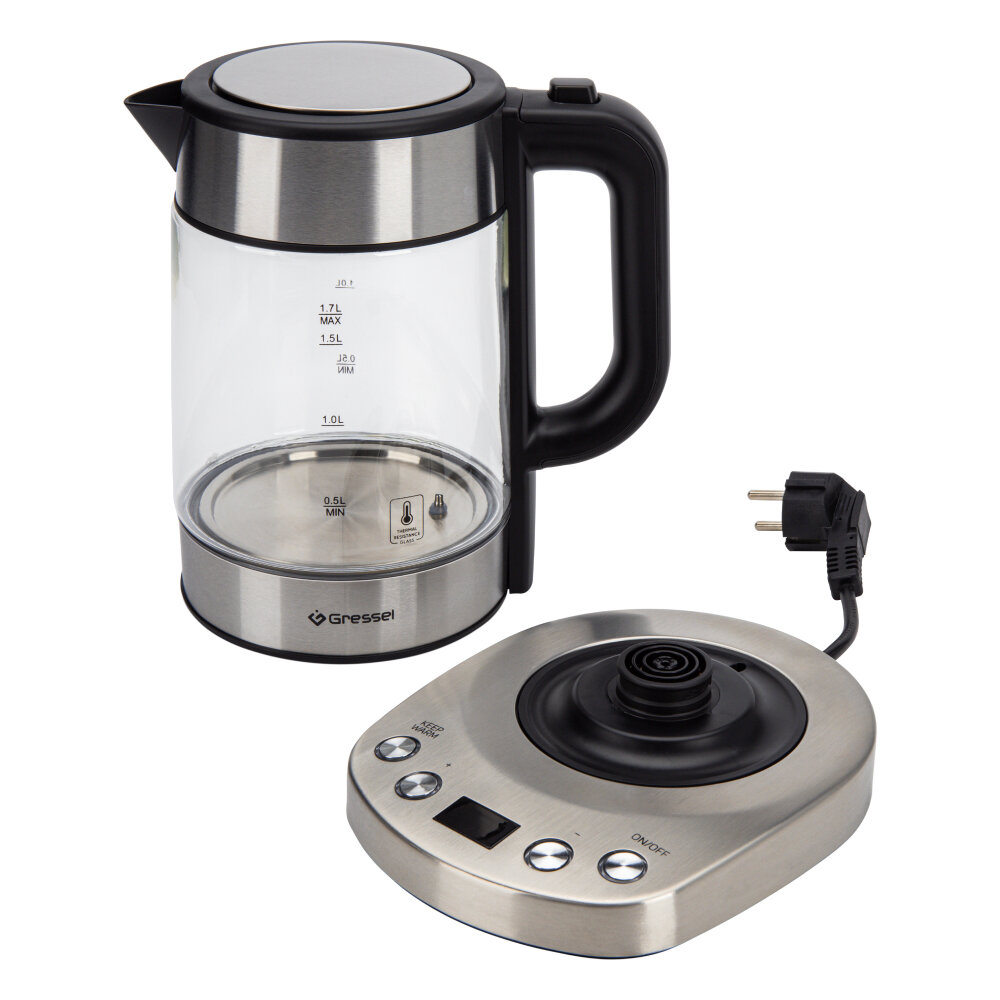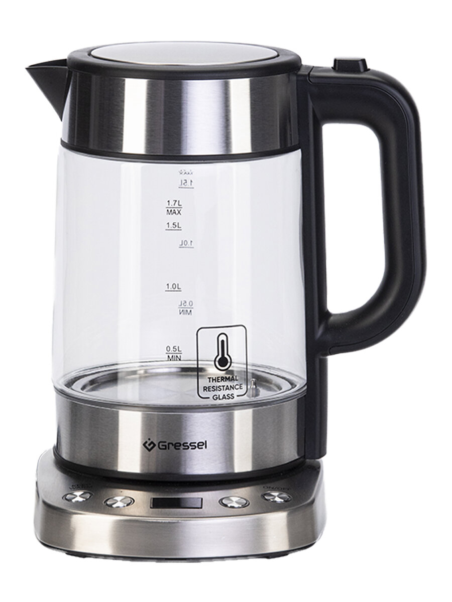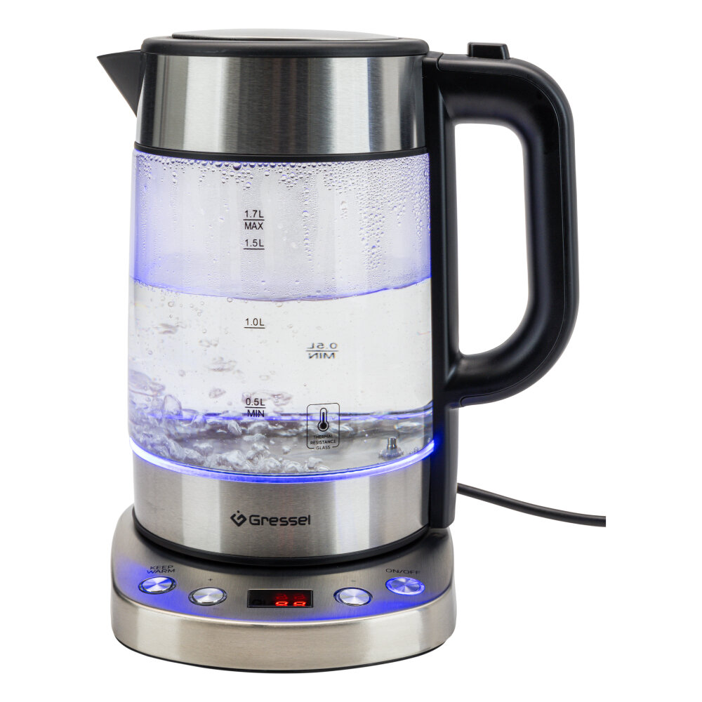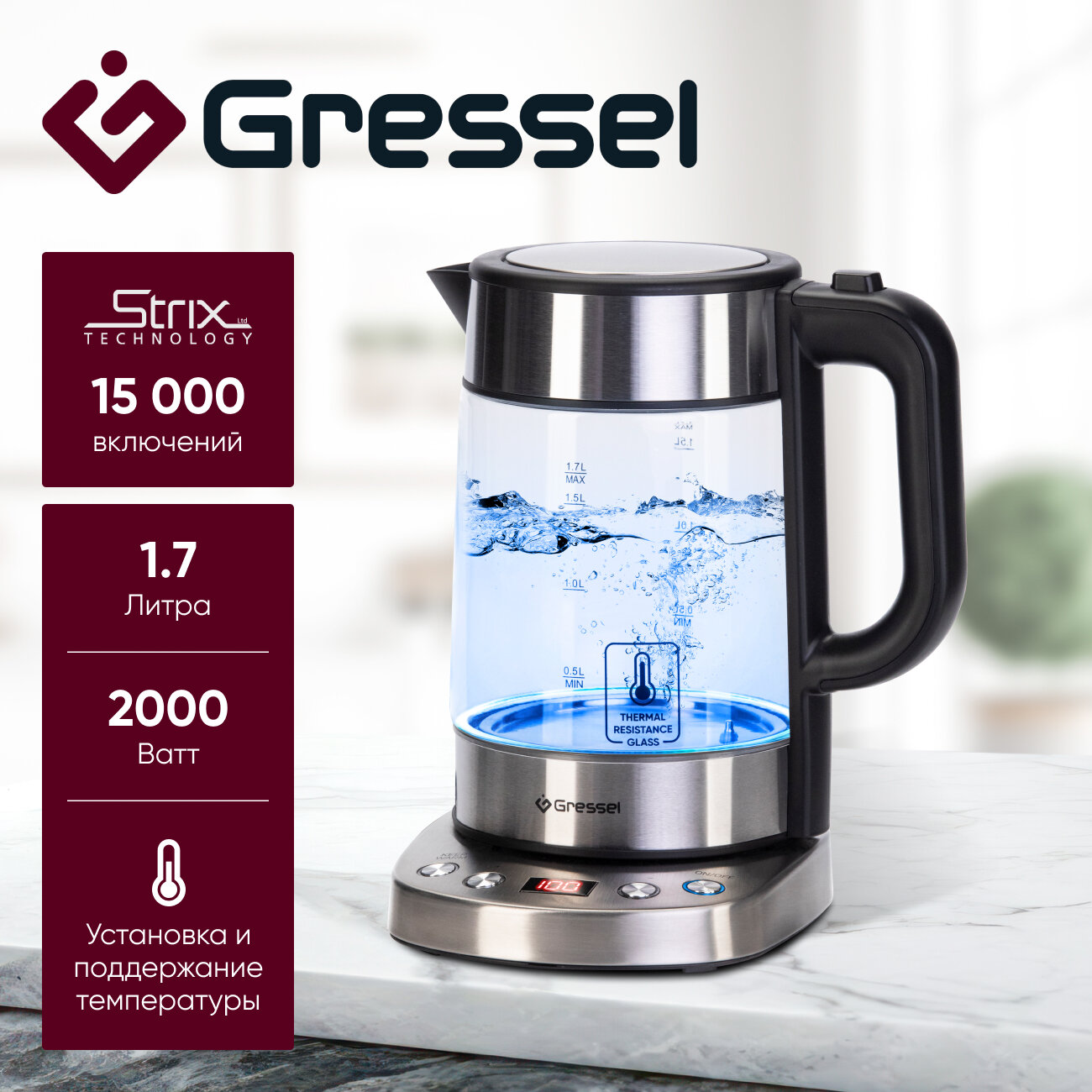 Купить Чайник электрический Gressel GRK-1102 с регулировкой температуры, стеклянный с подсветкой, 1,7л, STRIX-контроллер