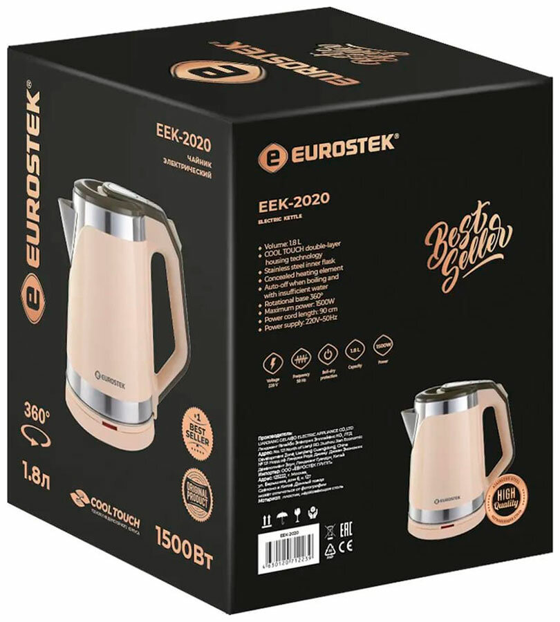 Чайник EUROSTEK EEK-2020 двойные стенки бежевый интересное: