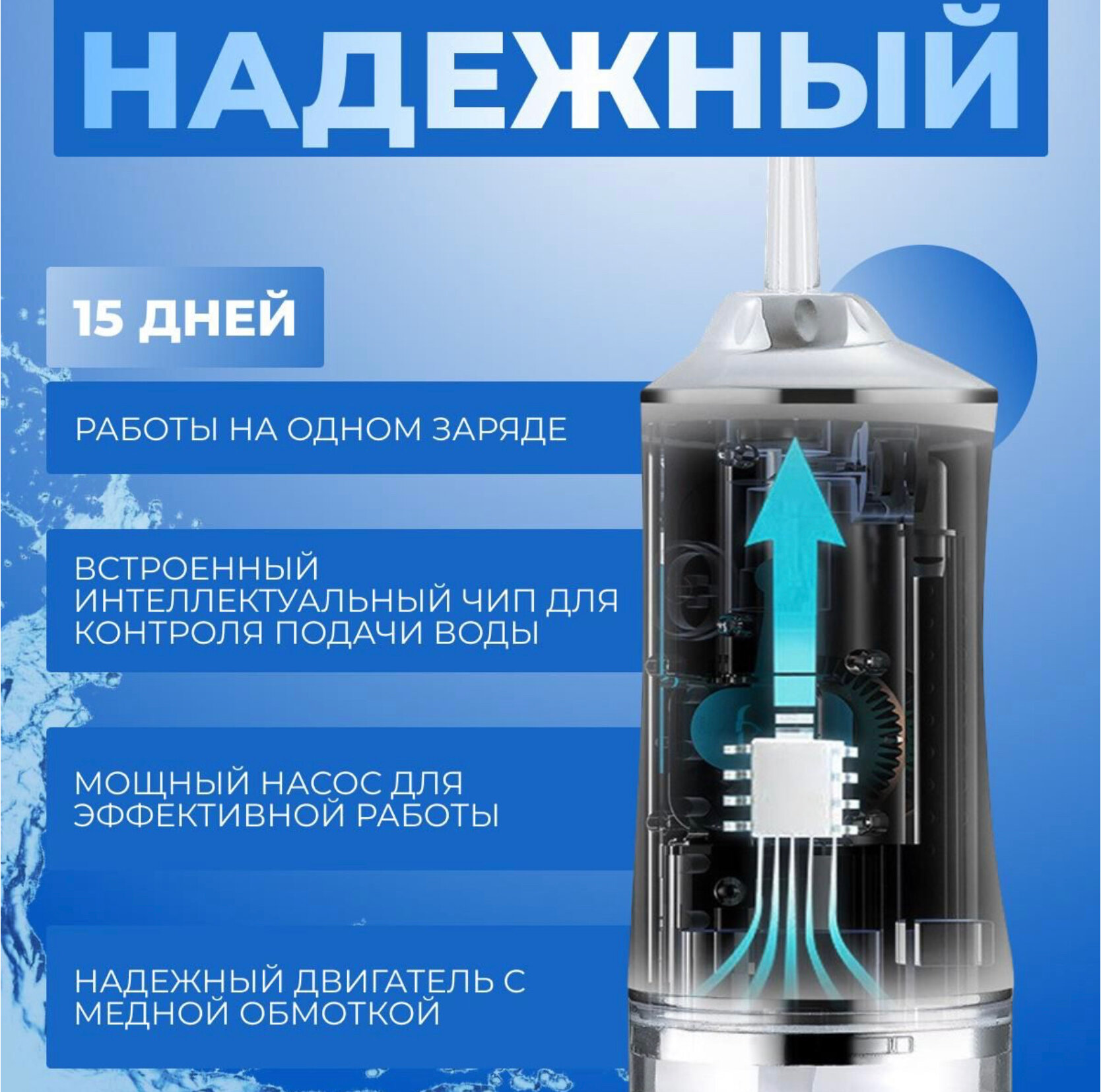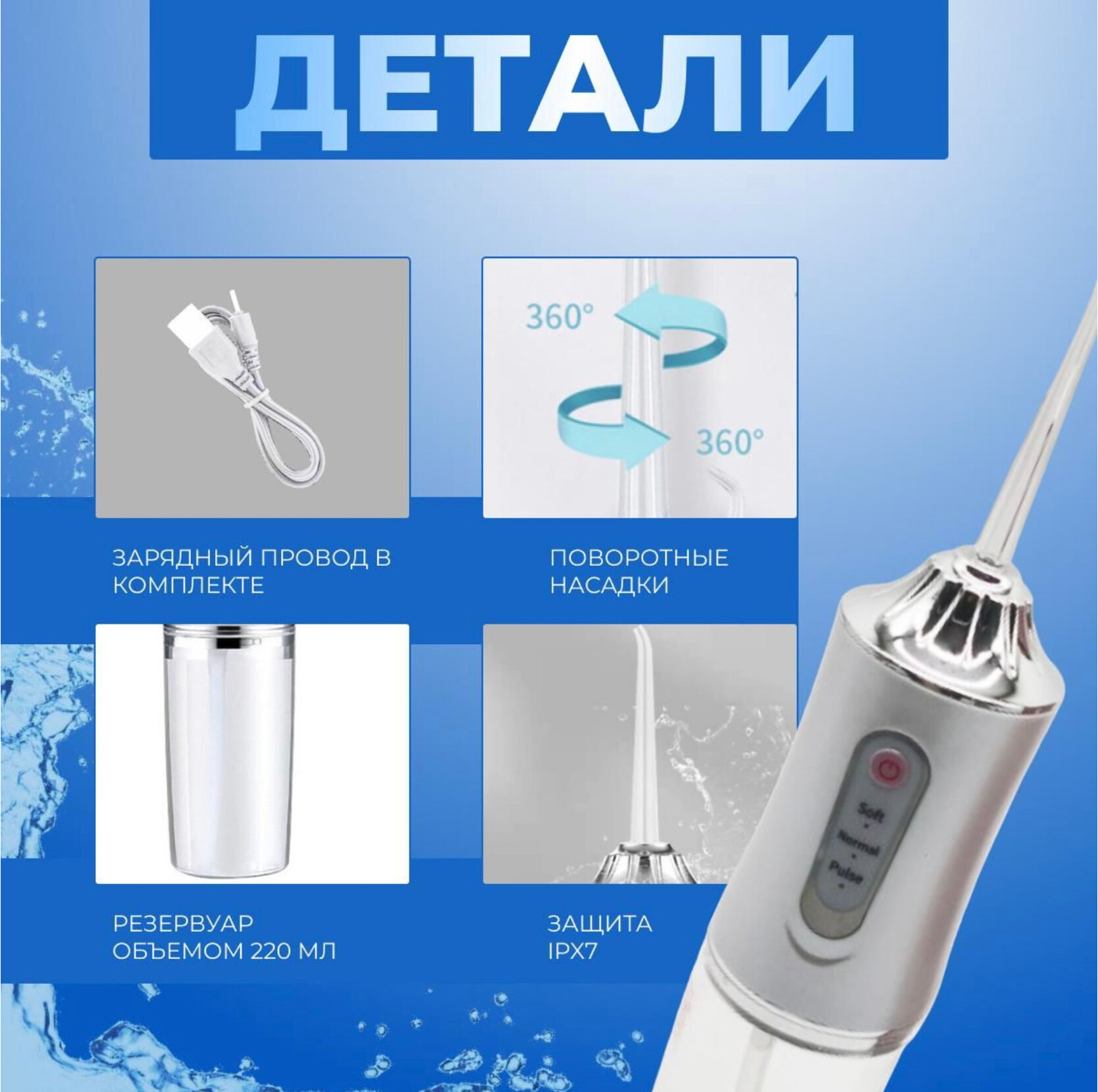 Ирригатор портативный для полости рта / 4 насадки/ Перламутровый интересное: