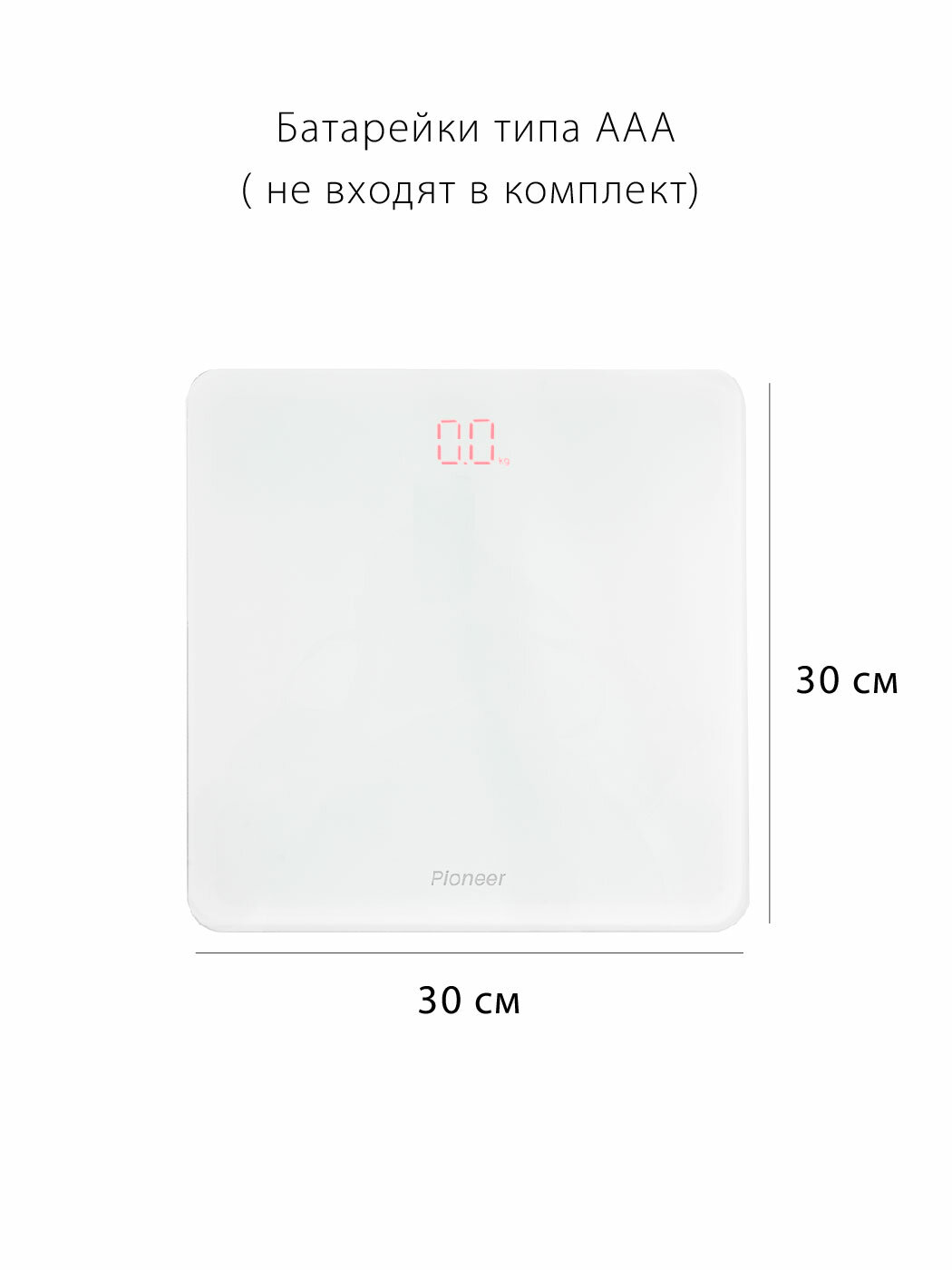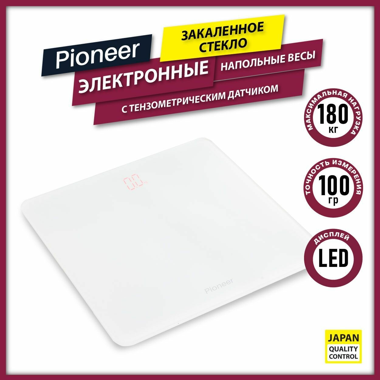 Напольные весы электронные Pioneer со встроенным тензометрическим датчиком, LED-дисплей, закаленное стекло 6 мм, нагрузка до 180 кг, 30*30 см