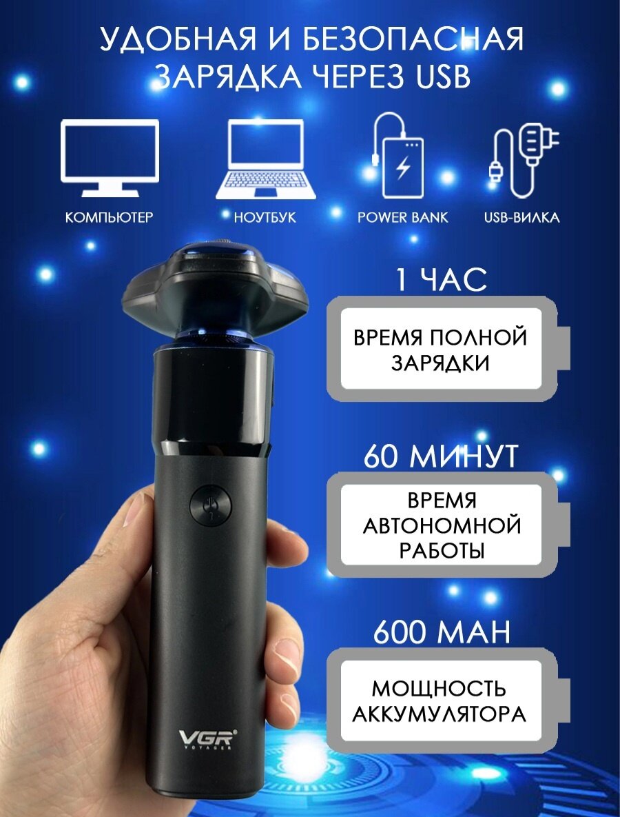 | Особенности | быстрая зарядка / дисплей / для чувствительной кожи / питание от USB / триммер |