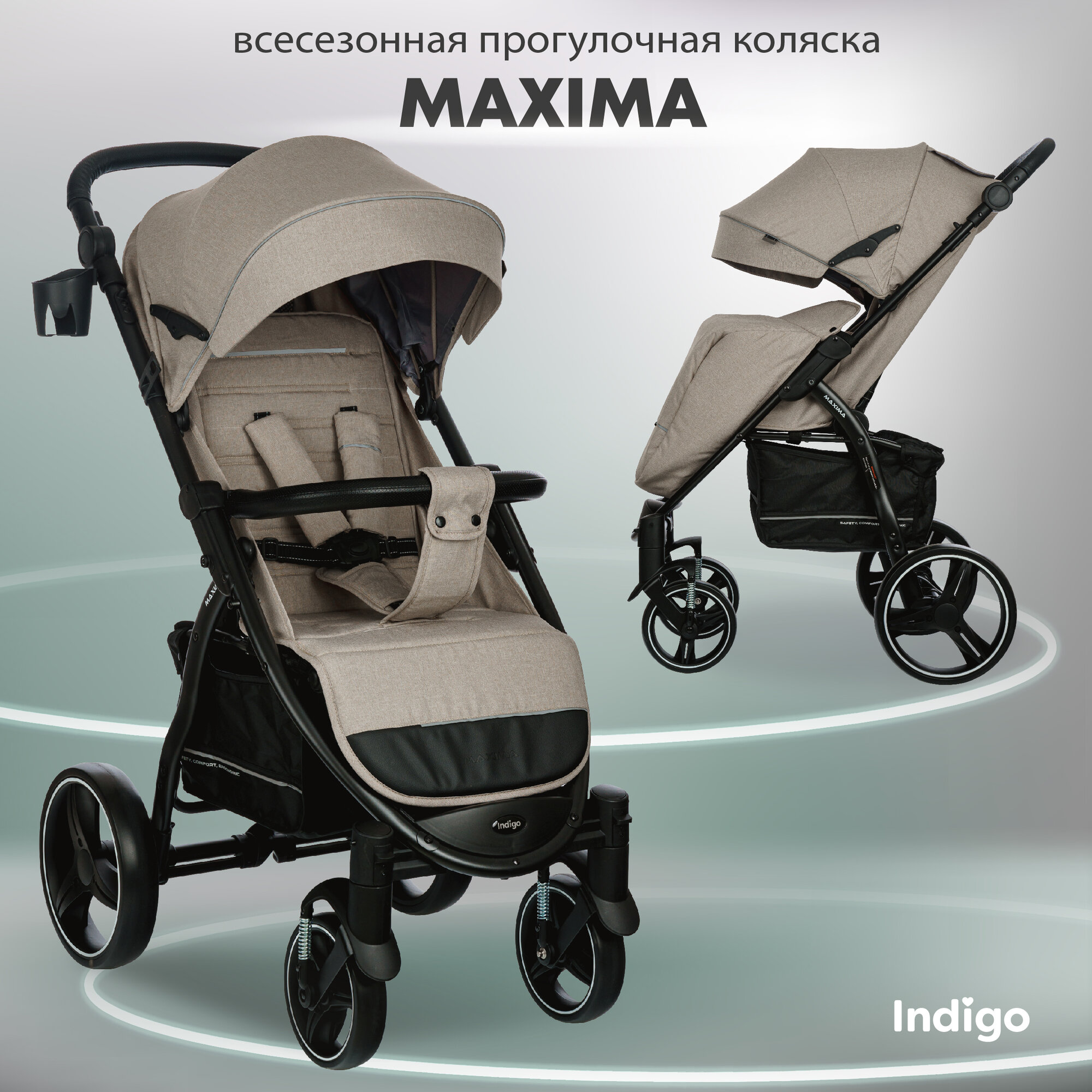 Коляска прогулочная детская MAXIMA (INDIGO), съемный бампер, цвет бежевый