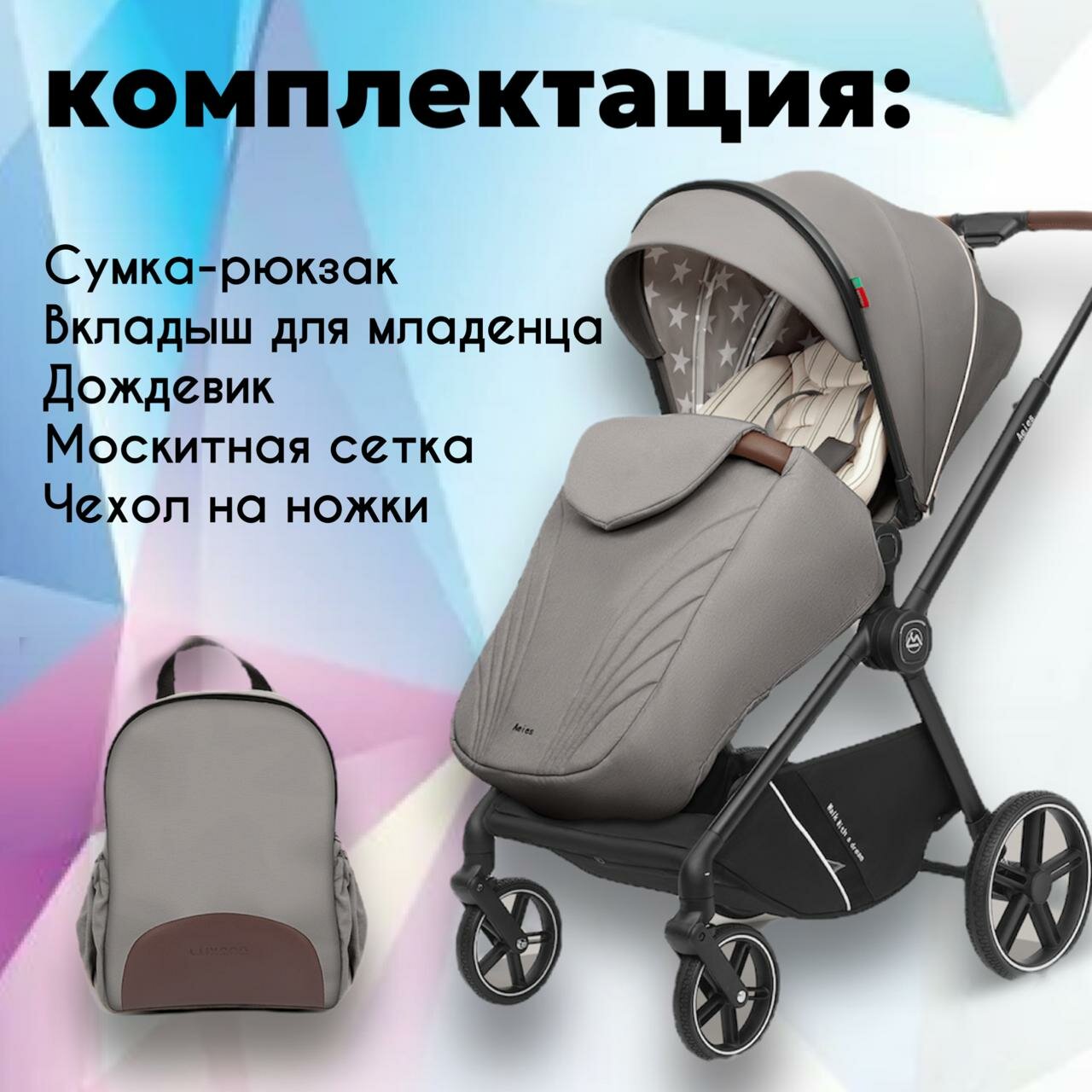 Коляска прогулочная детская Luxmom А2 Aeies интересное: