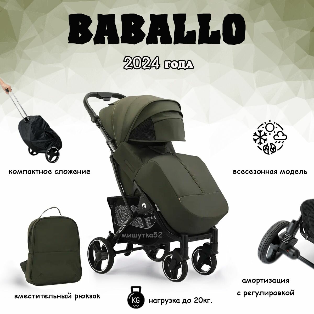 Ниже Вы можете прочитать отзывы на Коляска прогулочная всесезонная BABALO-2024 Армейский с черным, ознакомится с подробными характеристиками, посмотреть интересные обзоры и фотографии на Коляска прогулочная всесезонная BABALO-2024 Армейский с черным.
