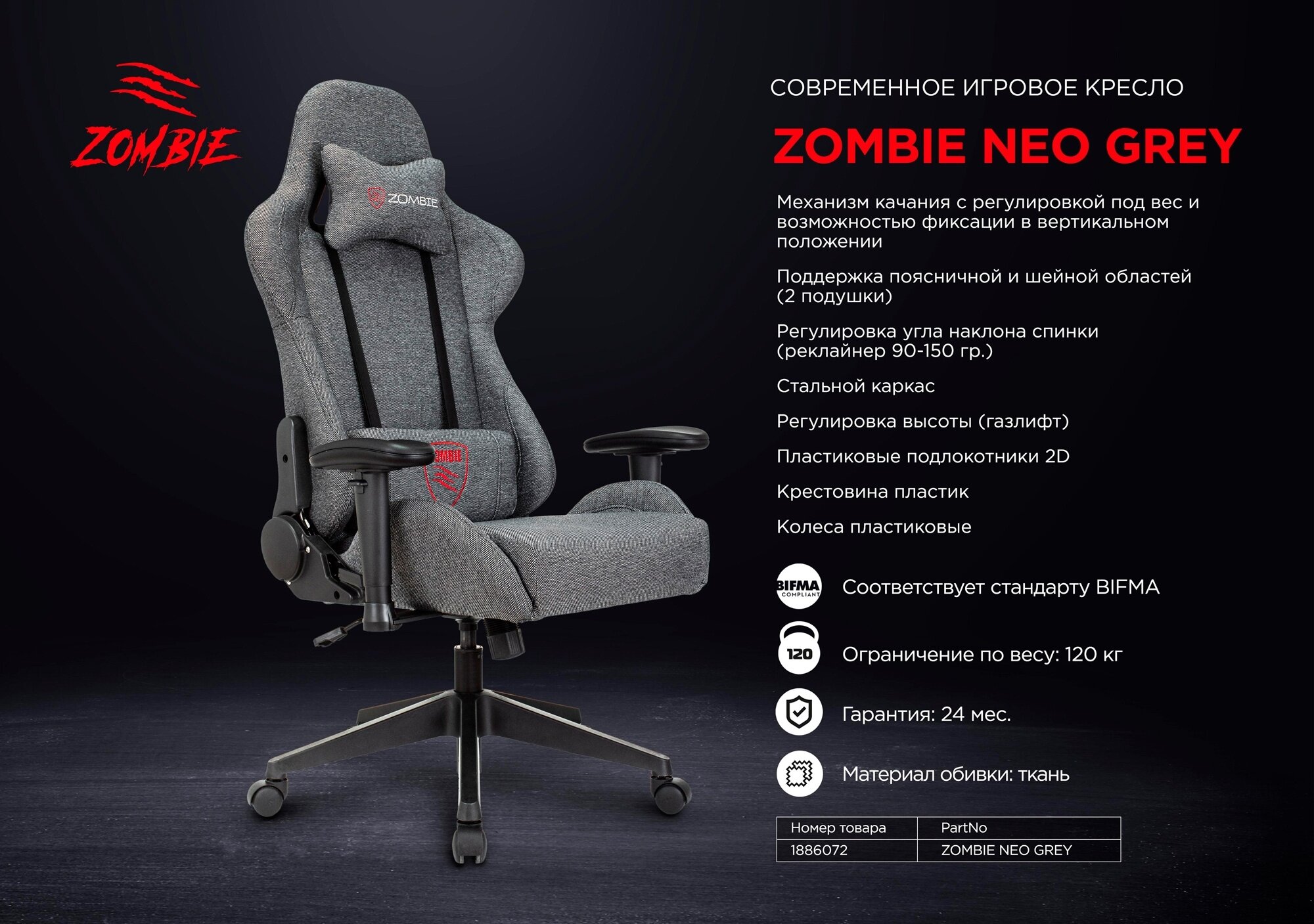 Кресло ZOMBIE Neo серый [zombie neogrey] интересное: