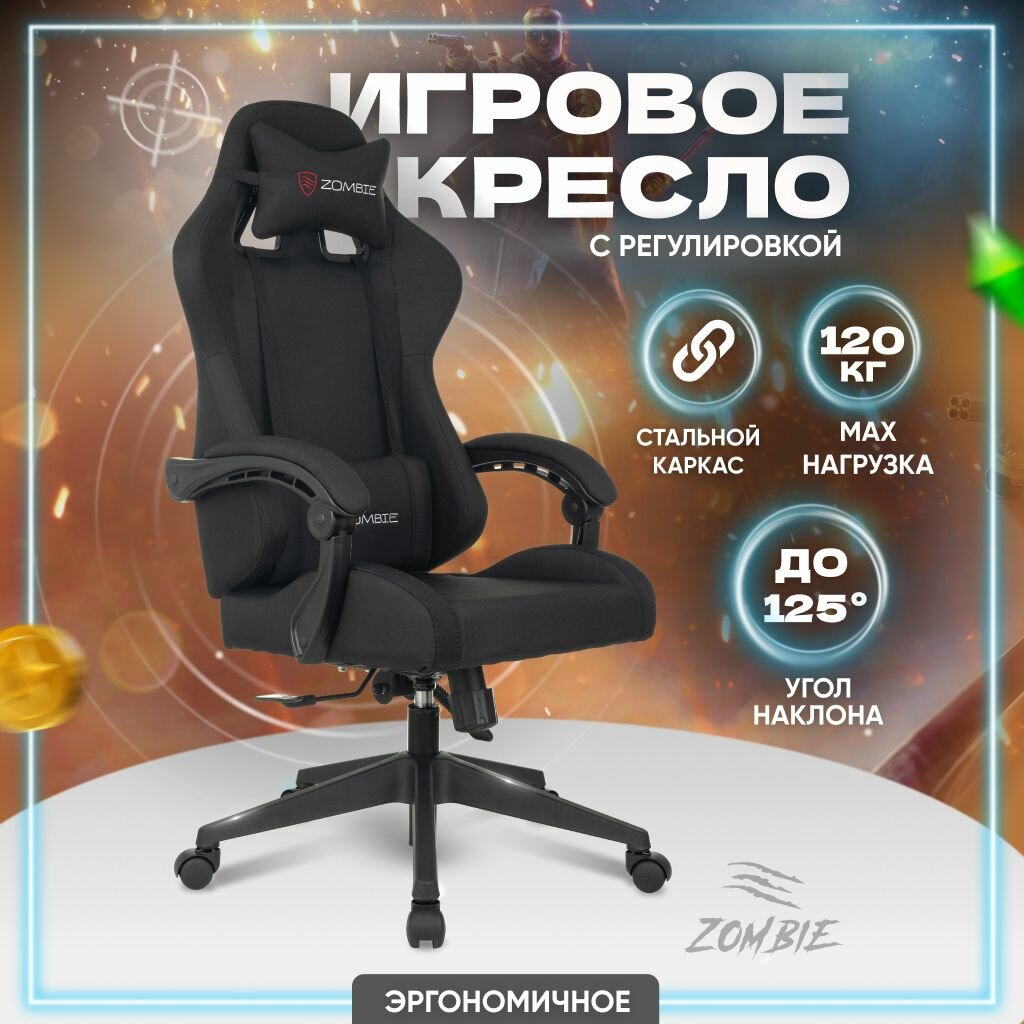 Кресло компьютерное игровое офисное для геймеров Бюрократ с подголовником, текстиль, ZOMBIE GAME RGB