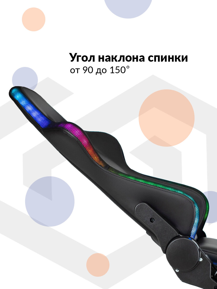 Купить Кресло компьютерное игровое Zombie, экокожа, ткань, черное, с RGB подсветкой, крестовина пластик - Кресло геймерское, с подголовником