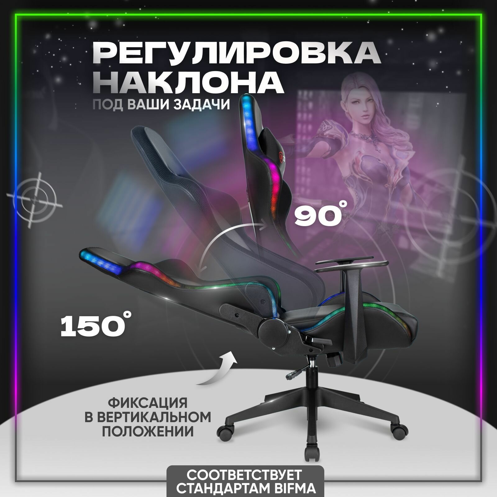 Кресло компьютерное игровое Zombie GAME с RGB подсветкой, стул геймерский на колесиках, с подлокотниками, высокой спинкой, подушками, экокожа / ткань