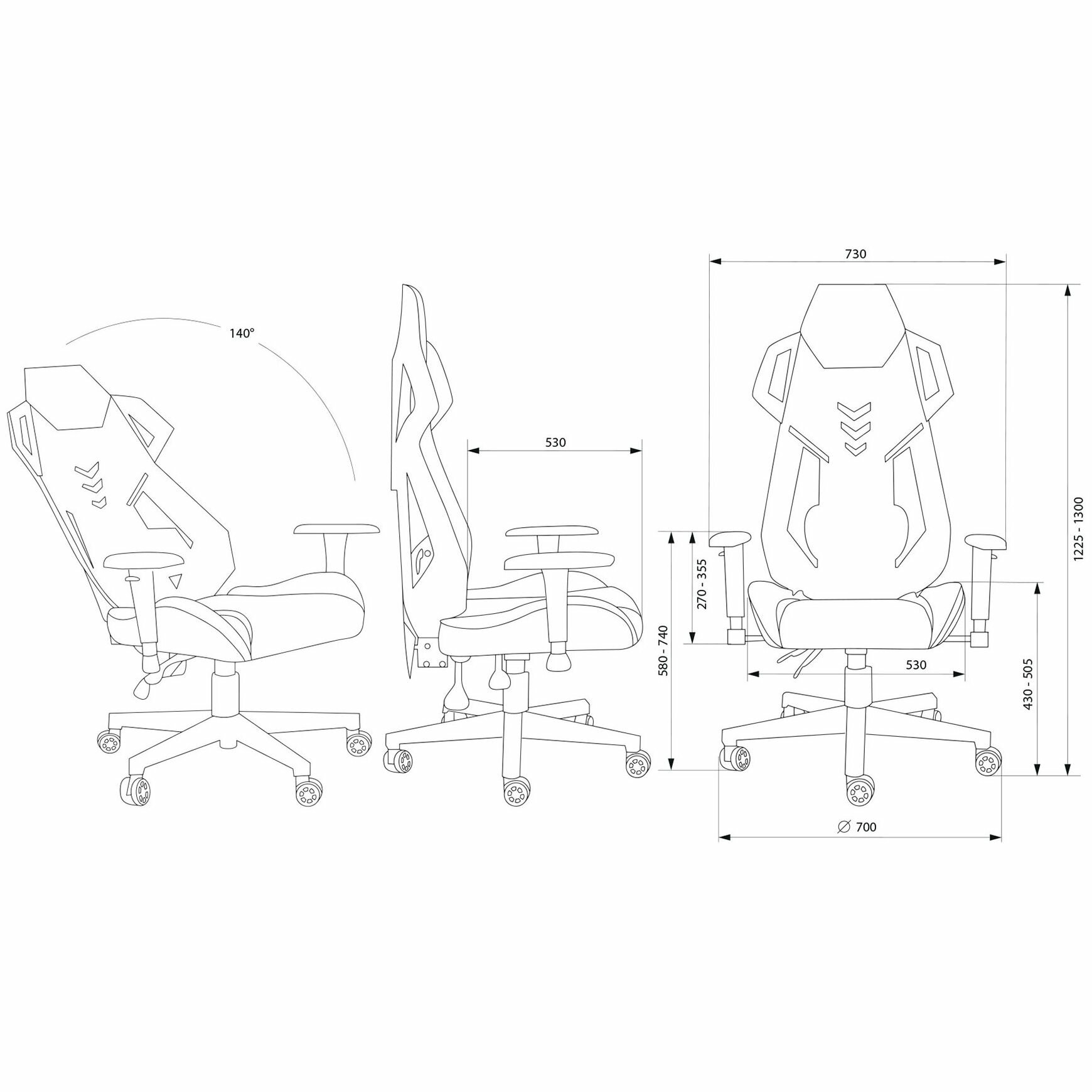 | Регулировка | высоты подлокотников / высоты поясничного упора / высоты сиденья / наклона спинки |