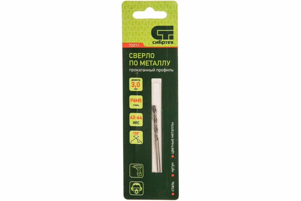 Купить Сверло по металлу (3х61х33 мм; Р6М5) СИБРТЕХ ,5штук