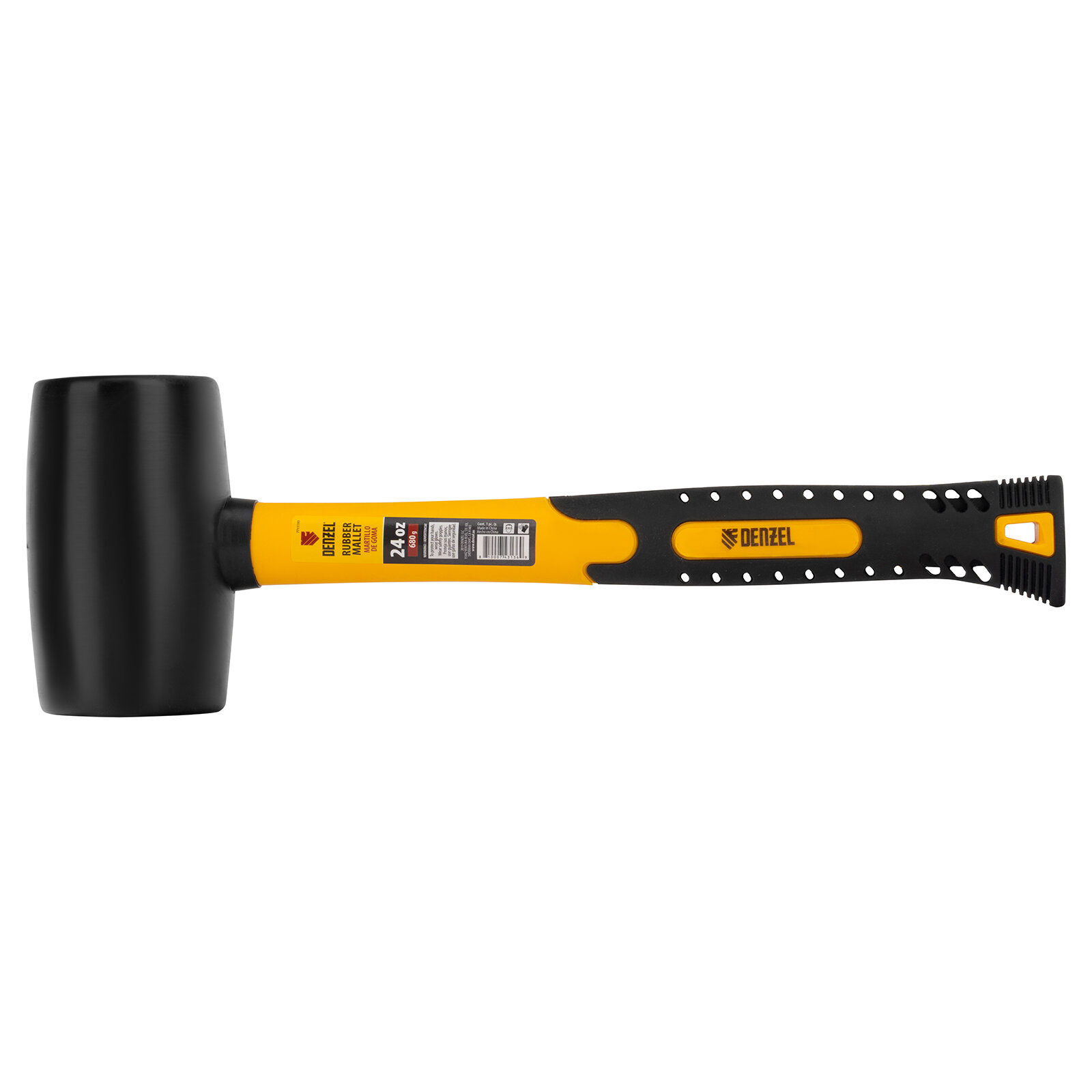 Киянка резиновая, 24 oz, черная резина, фибергласовая рукоятка// Denzel