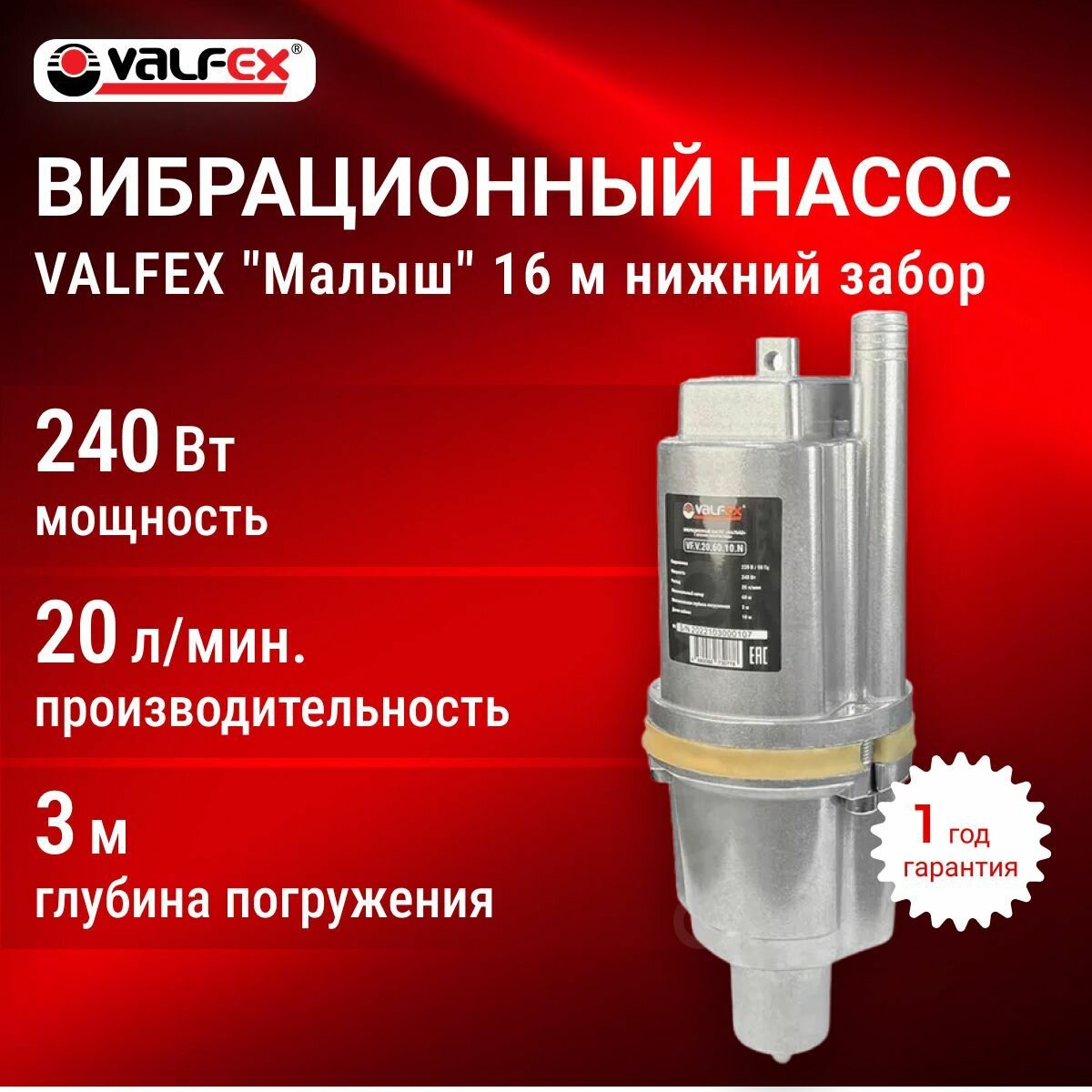 Насос погружной вибрационный VALFEX нижн. забор 20/60 -16м VF.V.20.60.16N интересное: