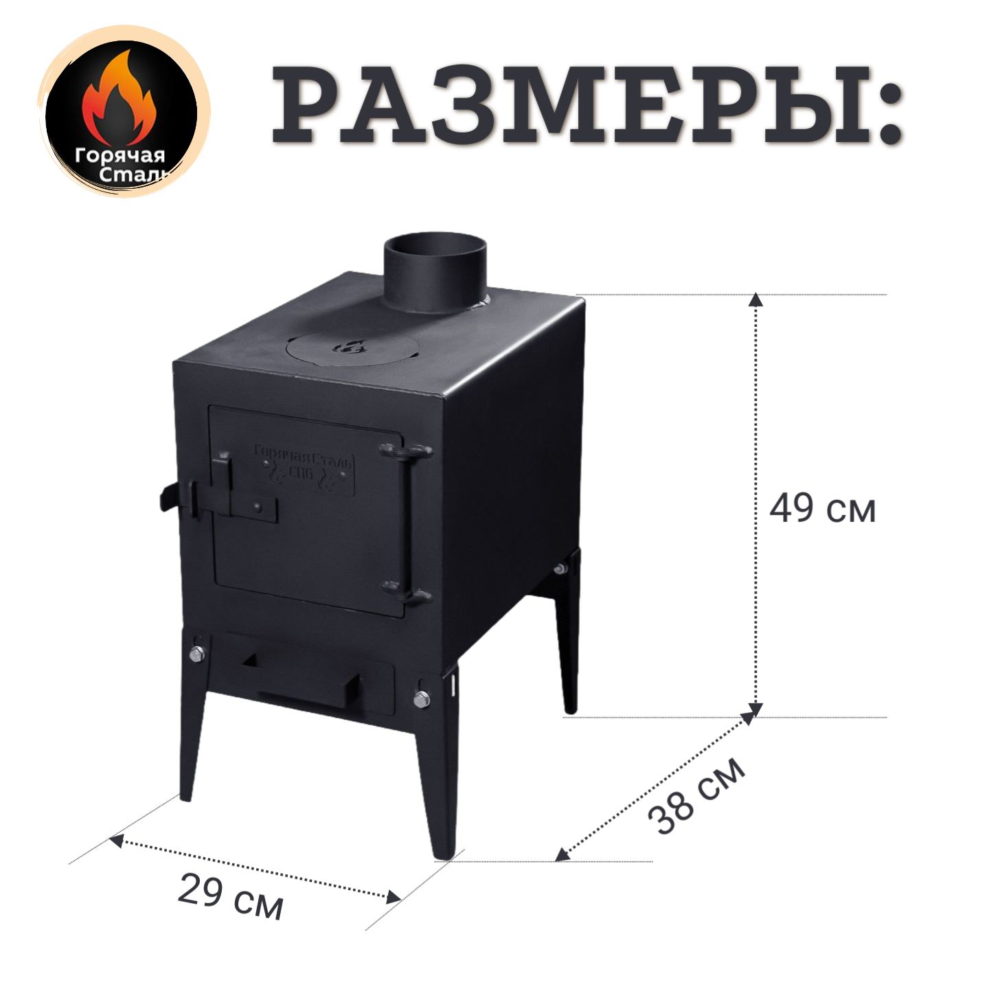 Печь буржуйка Стандарт для дачи, гаража, отопительная, с зольником, 3 мм, Горячая Сталь интересное: