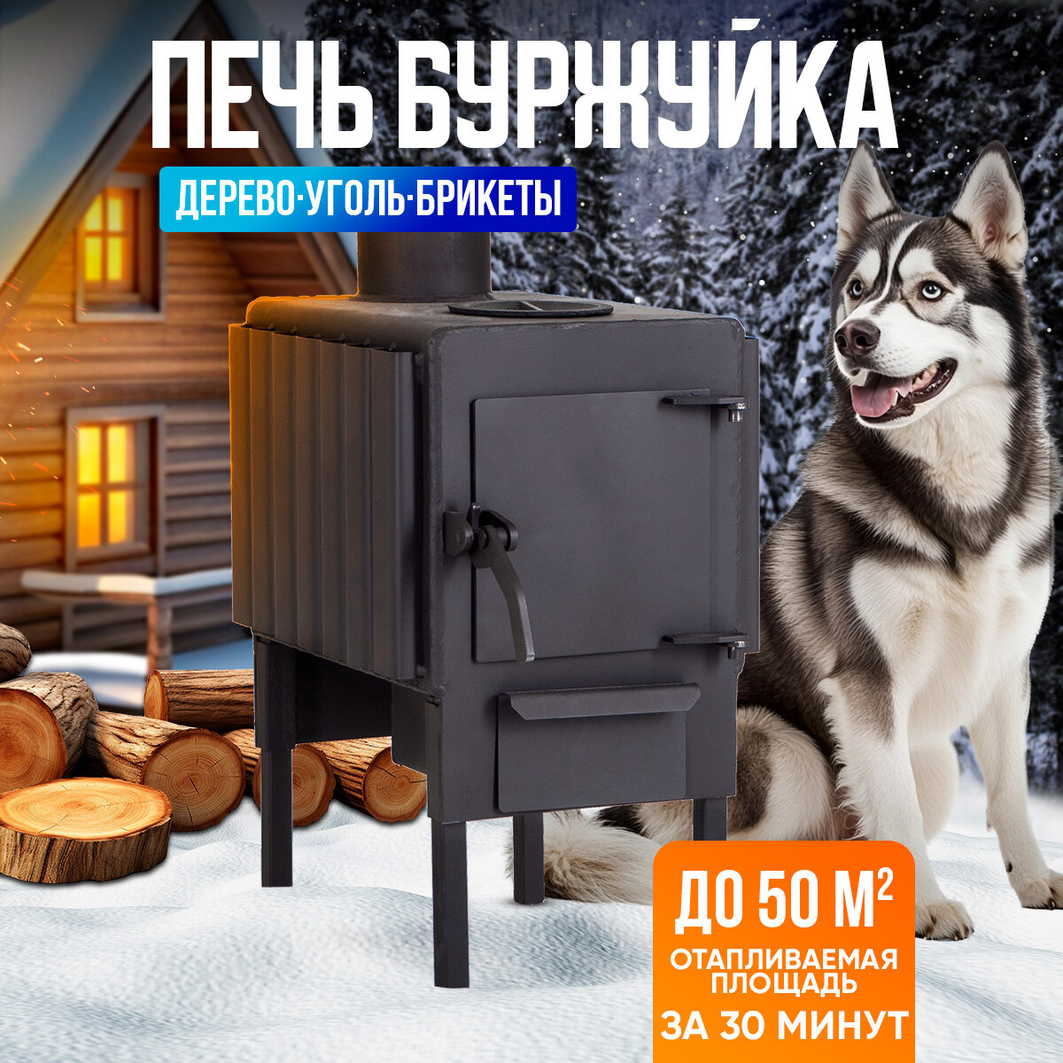 Отопительная Печь-буржуйка 50 м2 / дровяная печь для дома / гаража / палаток интересное: