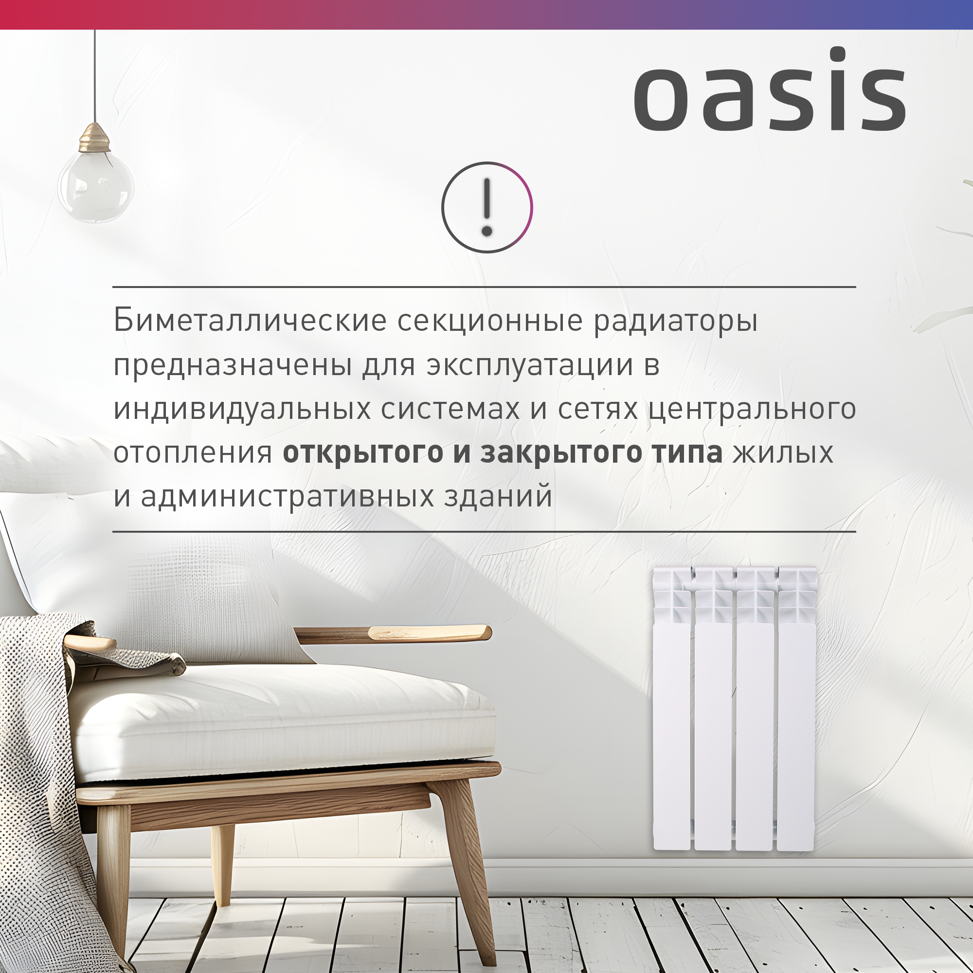 Биметаллический радиатор Oasis ECO 500/80 9 секций, 1368 Вт, Россия