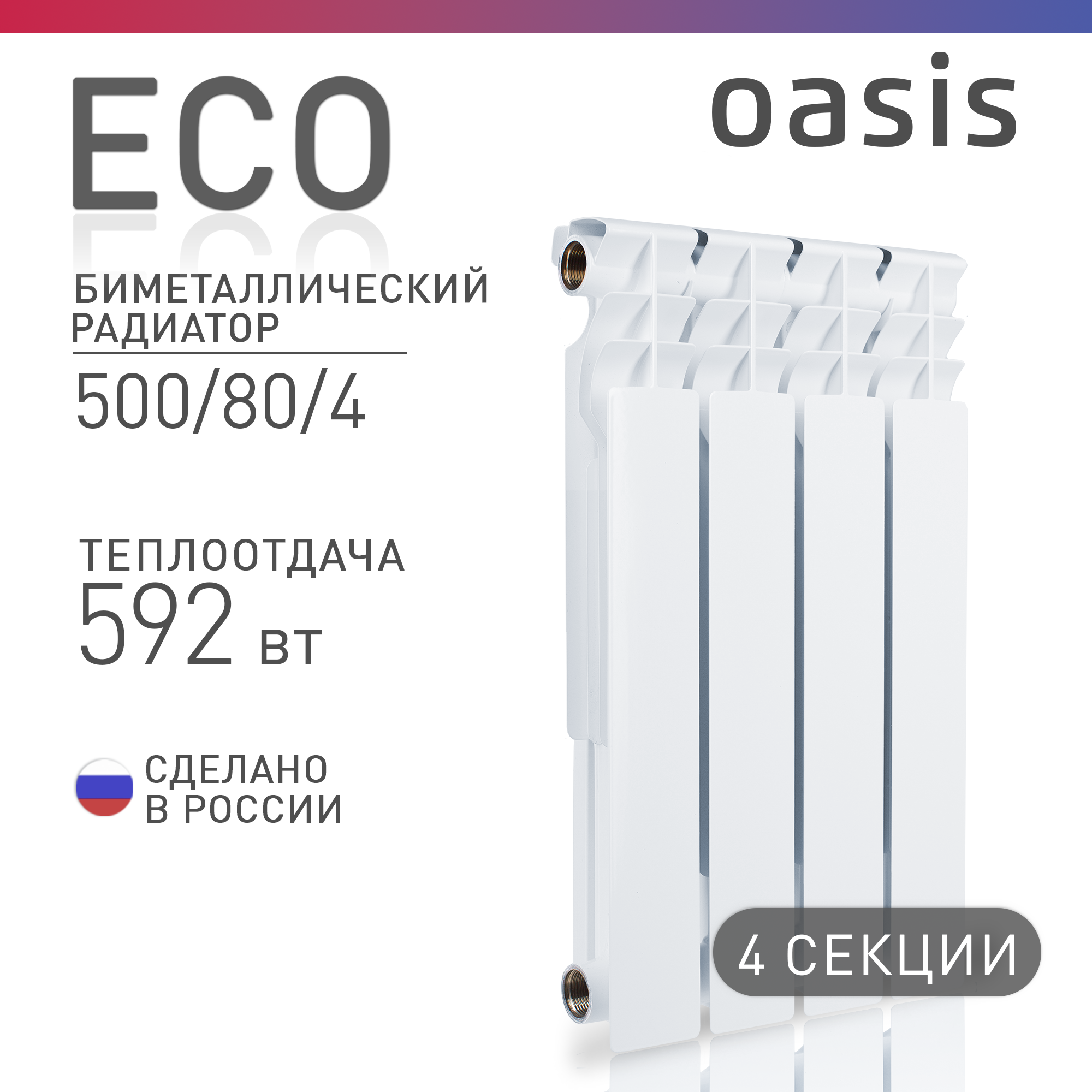 Радиатор биметаллический ECO 500х80 4 секции 592Вт Oasis 4640039487166