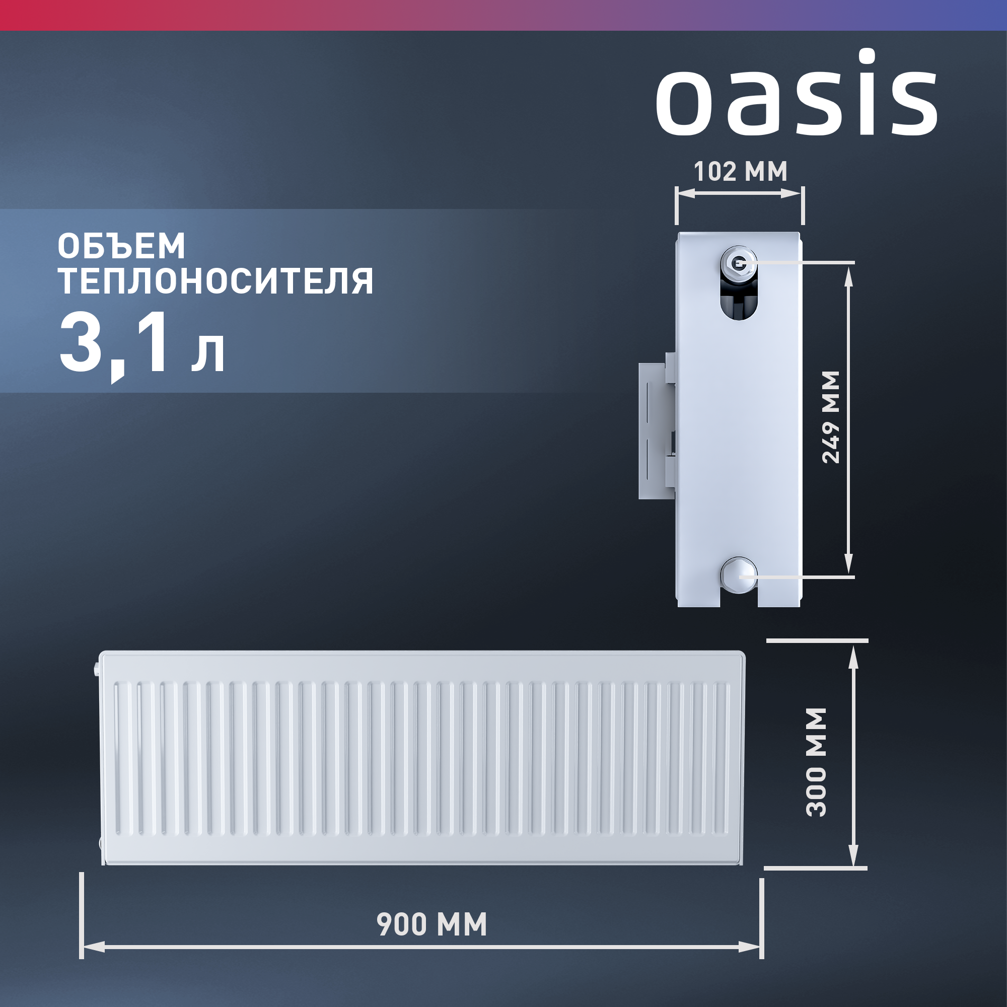 Радиатор отопления стальной, панельный, Oasis (боковое) C33х300х1000