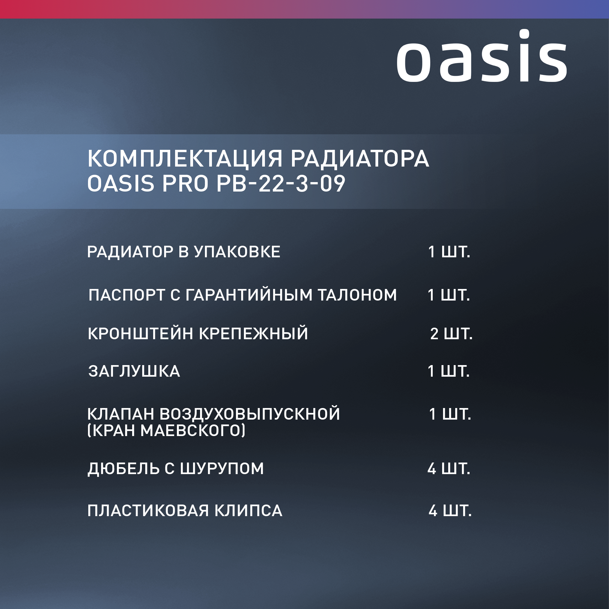 Купить Радиатор отопления стальной панельный Oasis Pro PB 22-3-09, боковое подключение