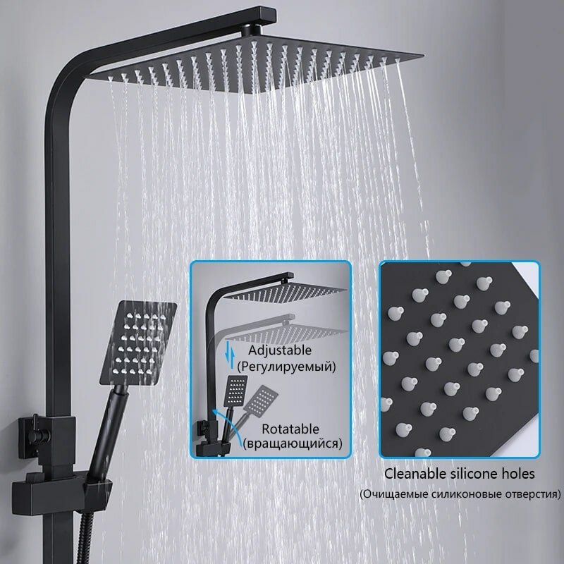 Душевая стойка с тропическим душем и термостатом 2 режима управления металлические лейки
