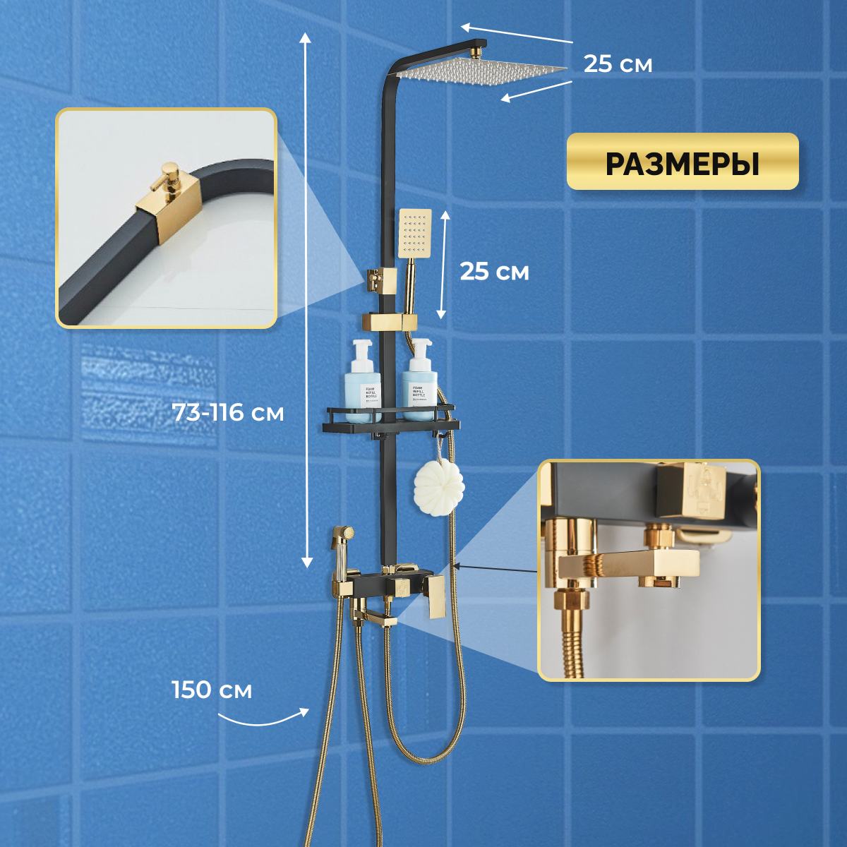 СохранитьДушевая система с тропическим, гигиеническим душем, стойка (комплект) со смесителем, гарнитур золото бронза для ванны интересное:
