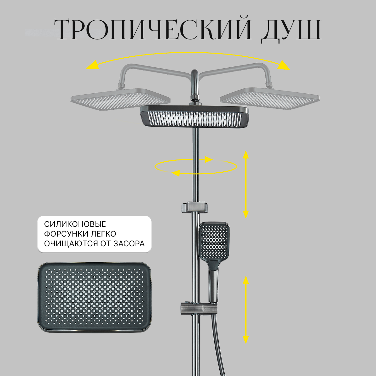 Душевая система DHome с тропическим душем, душевой комплект (гарнитур), черный , 30 см, для ванны и душа, душевой кабины
