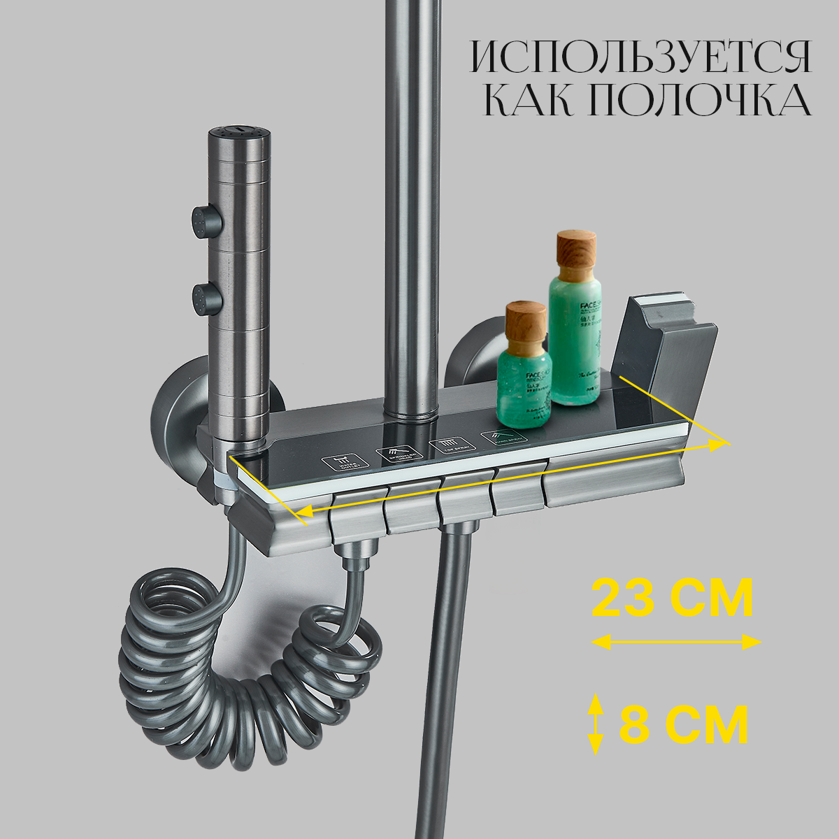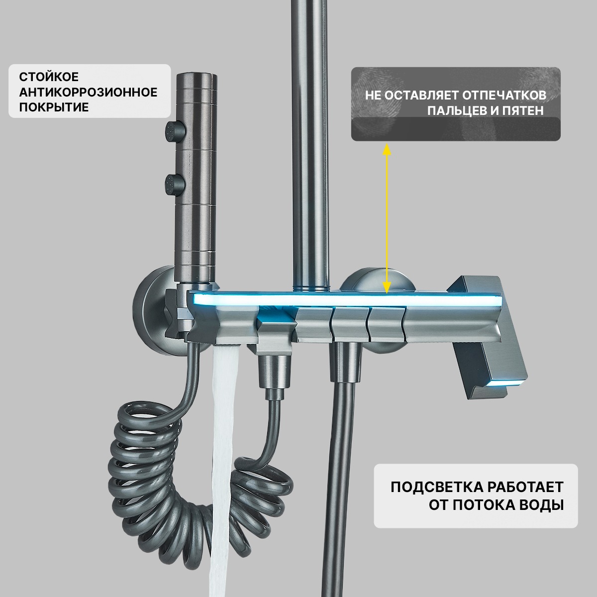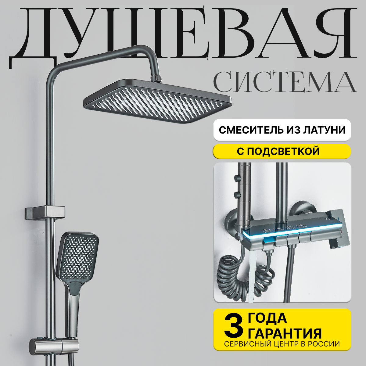 Душевая система DHome с тропическим душем и подсветкой, серый металлик