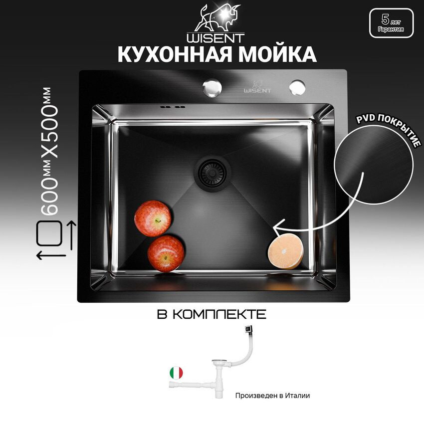 Кухонная мойка из нержавеющей стали WISENT WS36050B с PVD покрытием (60х50 см)