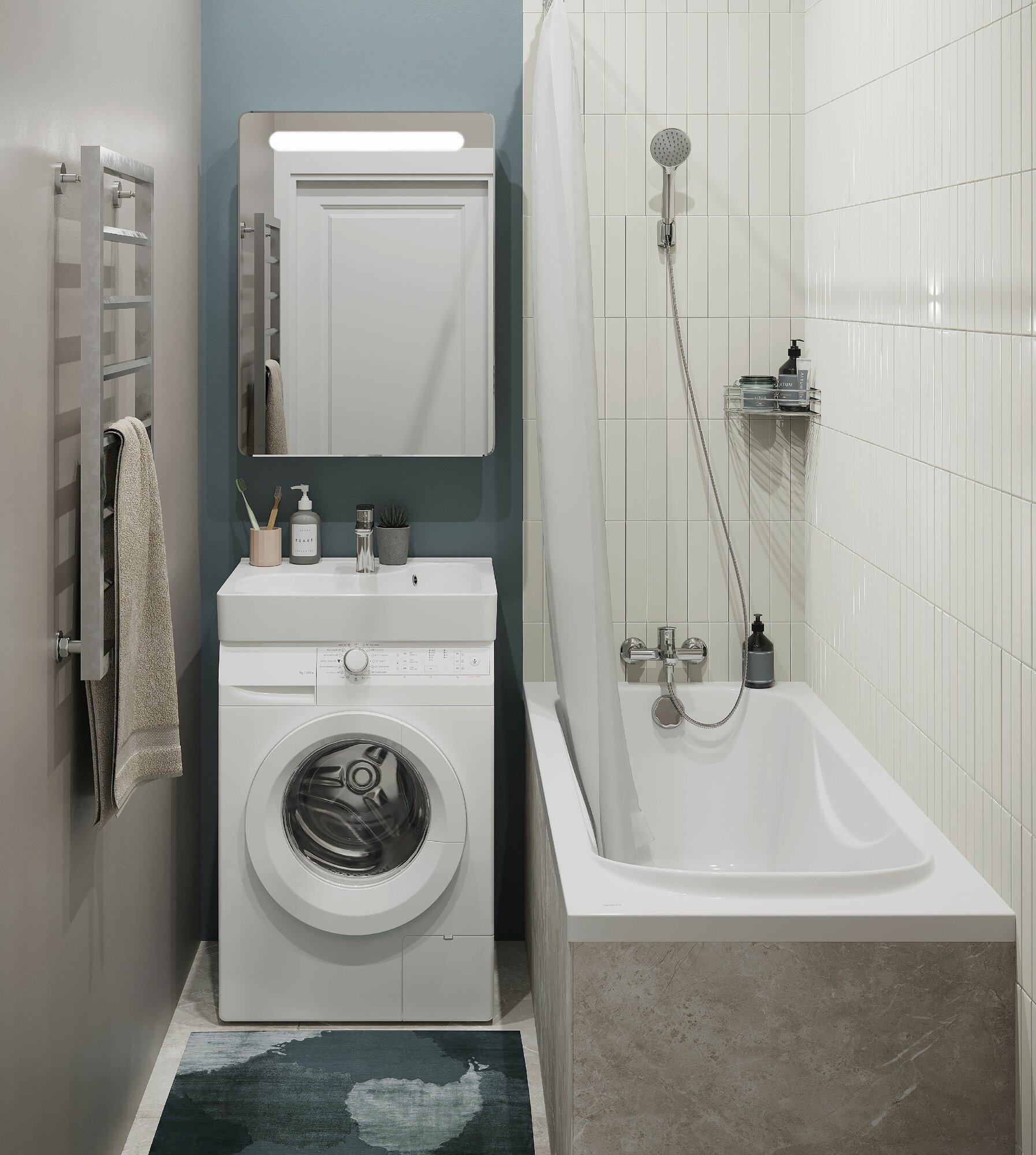 | Минусы: | Раковина кривая - винтом. Между стиралкой и раковиной остается много места, а высота раковины получается 110 см. |