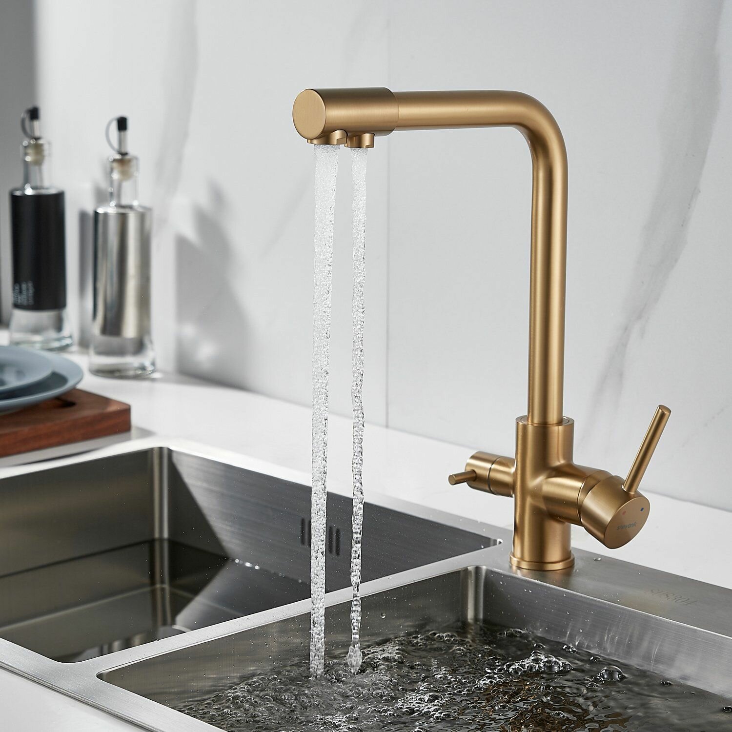 Смеситель для кухни с фильтром, золотой