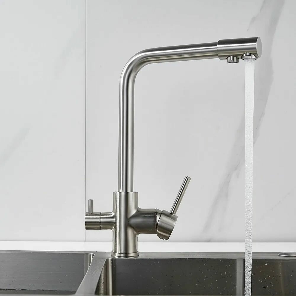 Смеситель для кухни с подключением фильтра питьевой воды Shevanik S328L сатин