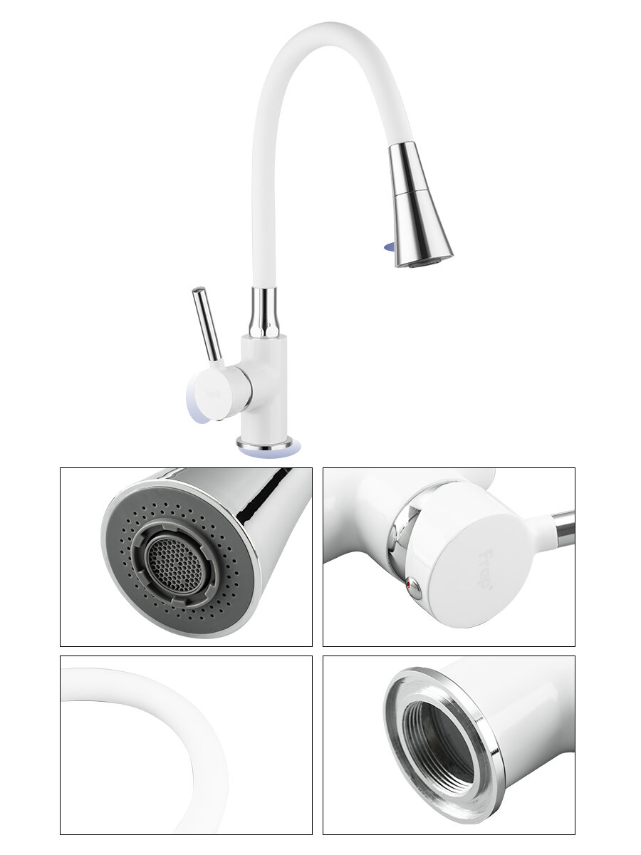 Смеситель Frap для кухни с гибким изливом белый F4044-8