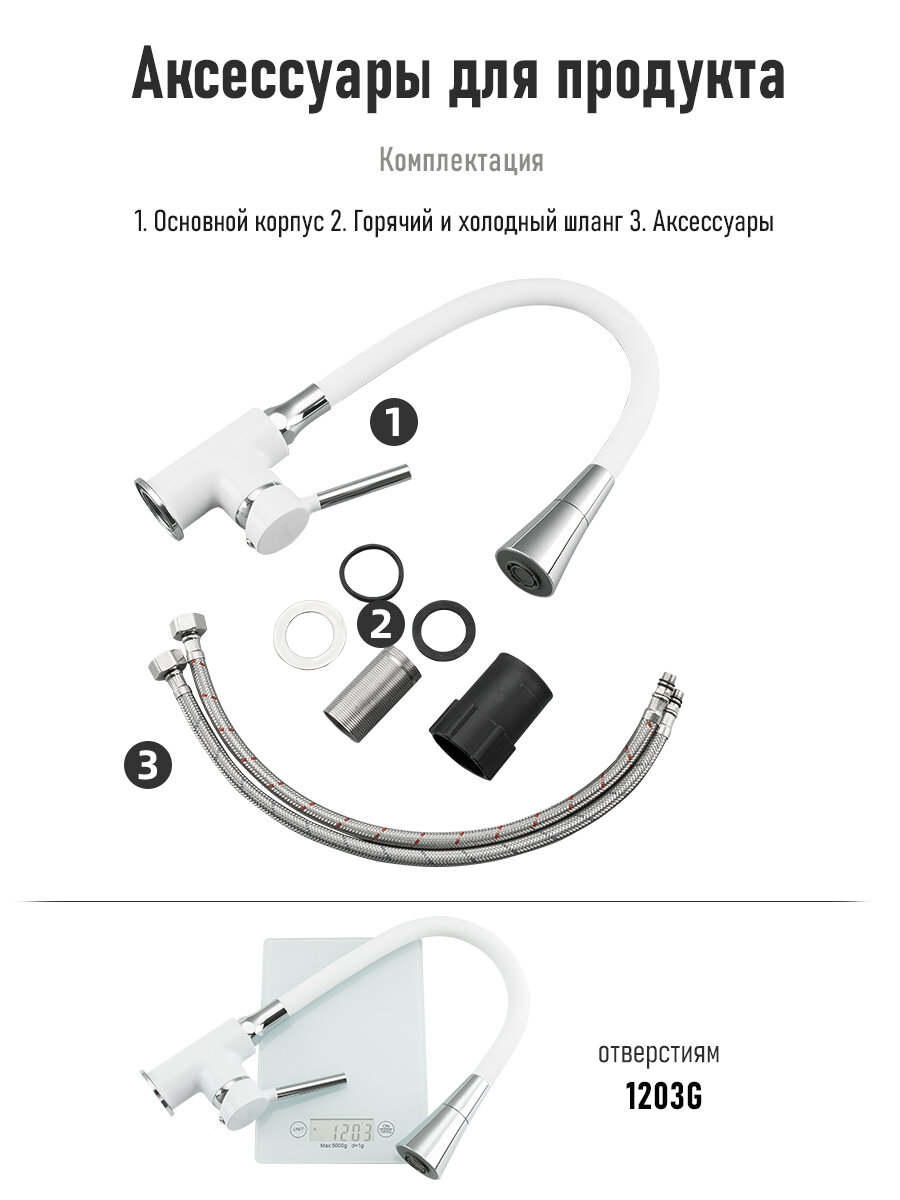 СохранитьСмеситель для кухни с гибким изливом, белый/хром FRAP F4044-8 интересное: