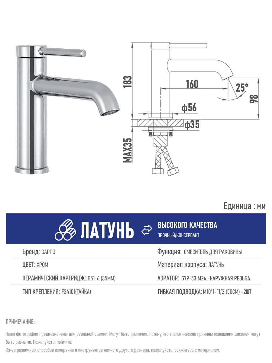 G1006 (Смеситель для раковины латунь/хром) интересное: