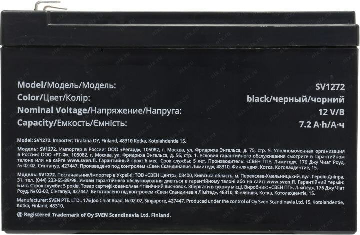 Аккумуляторная батарея для ИБП Sven SV 1272 12V/7,2AH