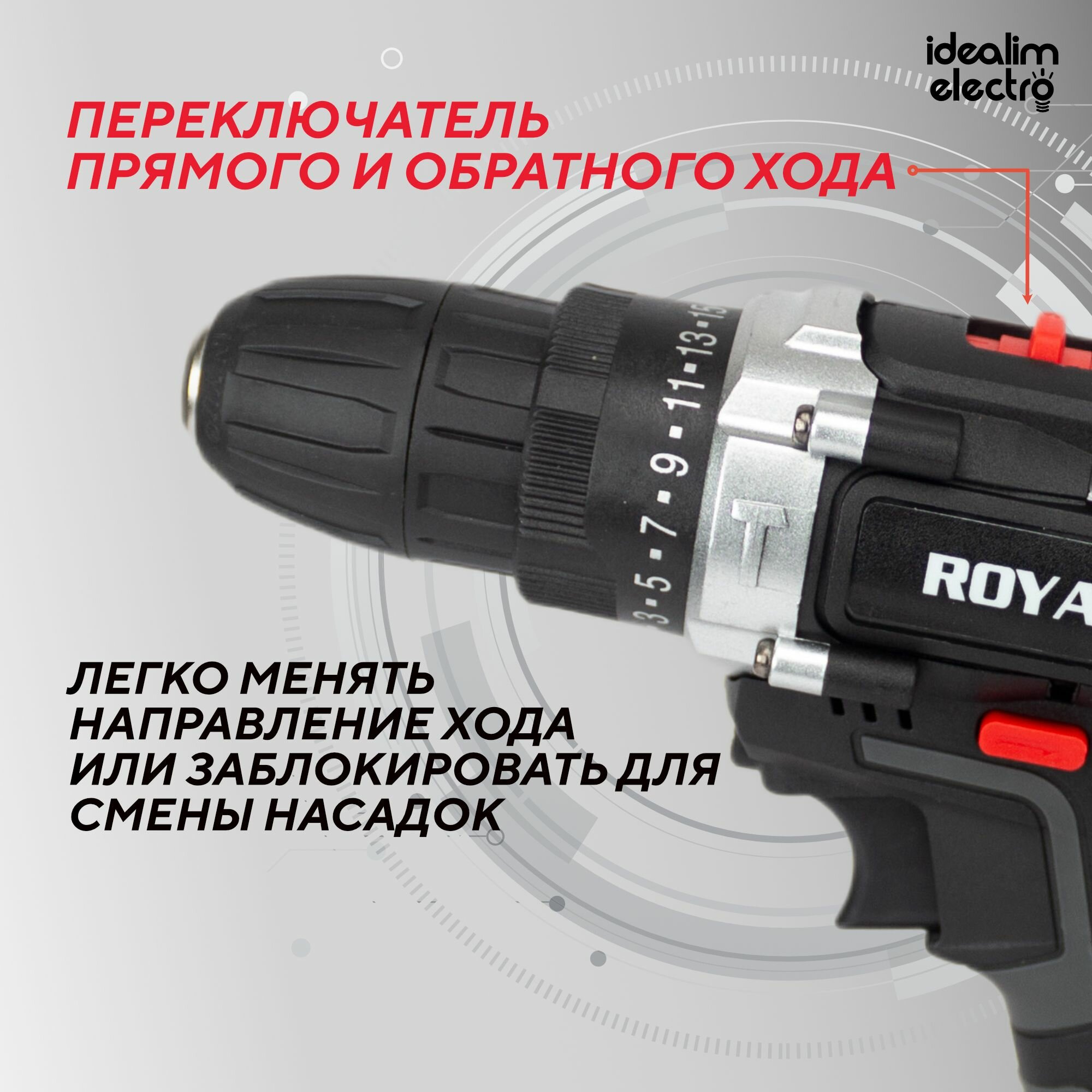 Дрель шуруповерт аккумуляторная 2 -21V , инструмент ручной строительный для сверления, закручивания, набор строительных инструментов 15 предметов в кейсе с двумя аккумуляторами 21в, с подсветкой