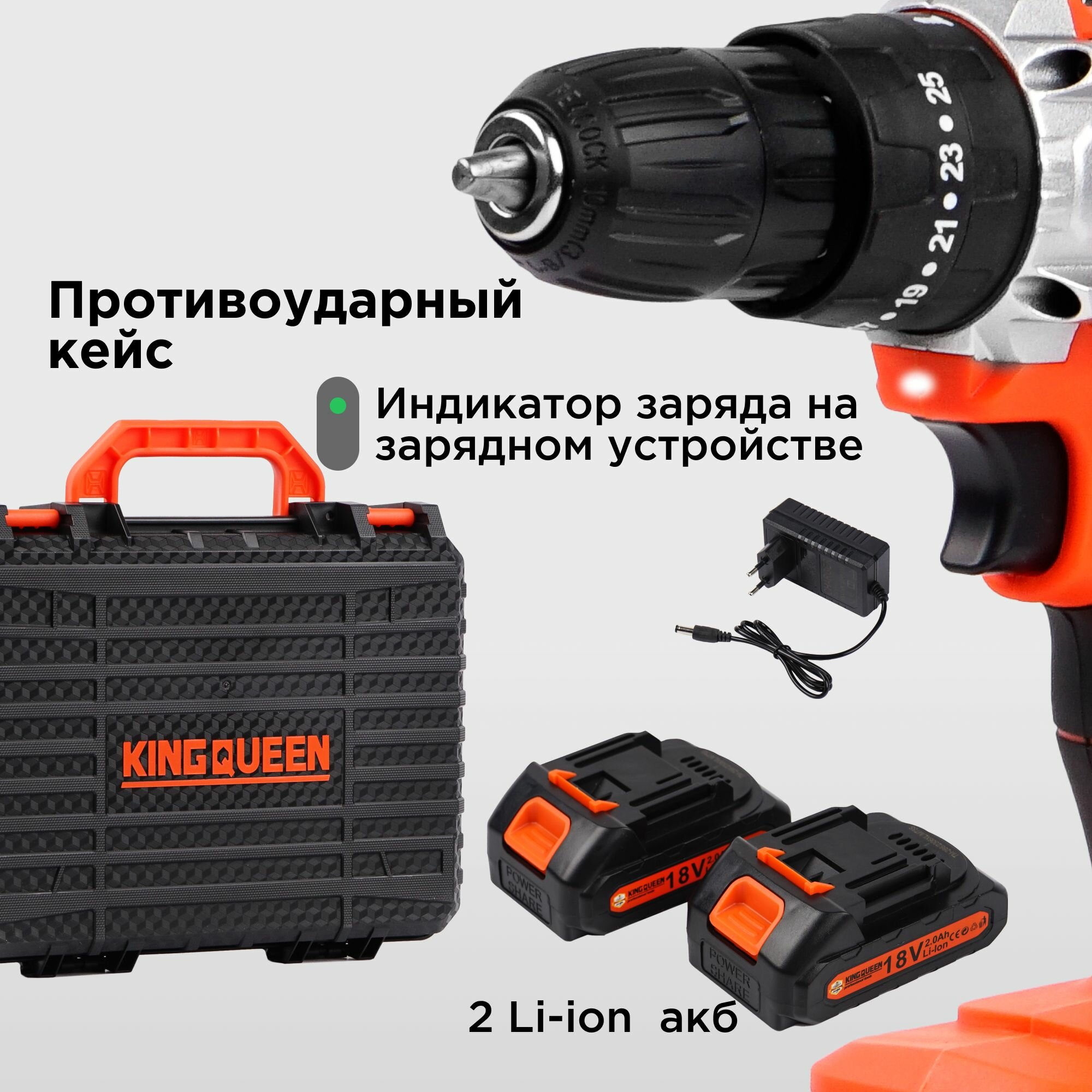 Дрель-шуруповерт аккумуляторный ударный, шуруповерт аккумуляторный 18В, KINGQUEEN Pro