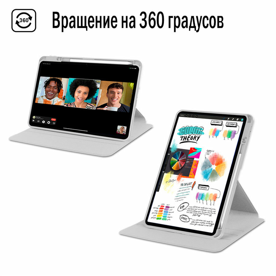 Чехол для планшета Xiaomi Mi Pad 6 / Mi Pad 6 Pro (11 дюймов), микрофибра, держатель для стилуса, поворотный 360 градусов (серый)