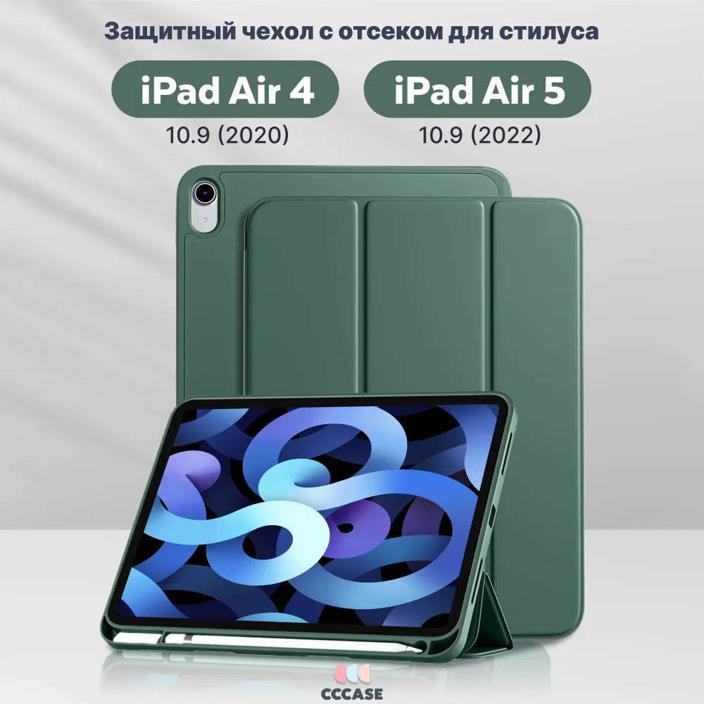 СохранитьCCCASE / Чехол на iPad Air 6 11(2024); iPad Air 5 10.9 (2022); iPad Air 4 10.9 (2020) - A2316 A2324 A2325 A2072 A2588 A2589 A2591 A2902 A2903 A2904, с отделением для стилуса, цвет: зеленый интересное: