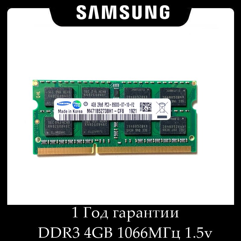 Оперативная память для ноутбука DDR3 4 ГБ 1066 МГц 1.5V CL7 SODIMM M471B5273BH1-CF8