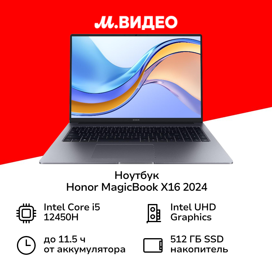 Купить Ноутбук HONOR MagicBook X16 2024/16"/Core i5-12450H/16/512/Win/Space Gray