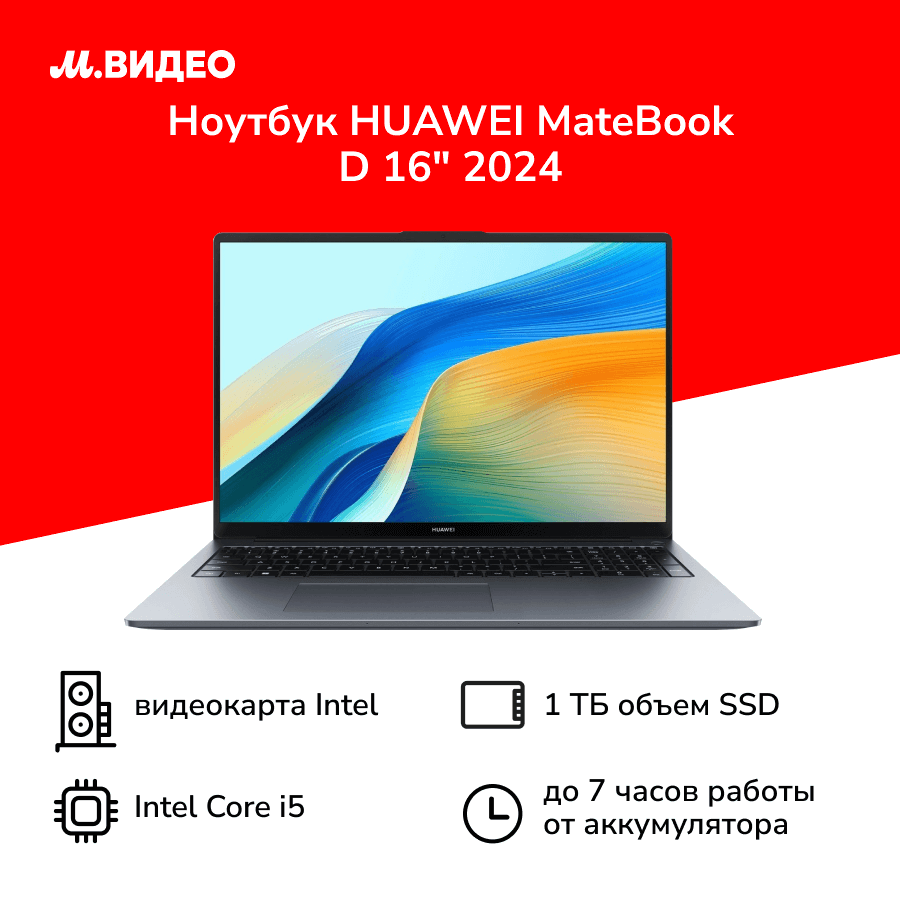 Ноутбук HUAWEI MateBook D 16 2024/16"/Core i5-12450H/16/1TB/Win/Space Gray (53013YJF) интересное: