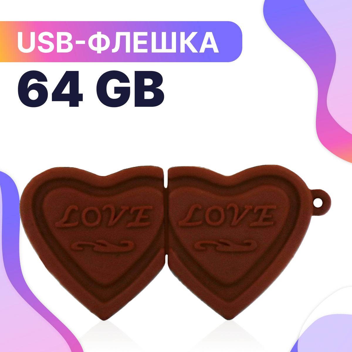 Купить Флешка USB 64GB / Оригинальная подарочная флешка ЮСБ 64 ГБ / Флеш накопитель / USB Flash Drive (Two hearts)